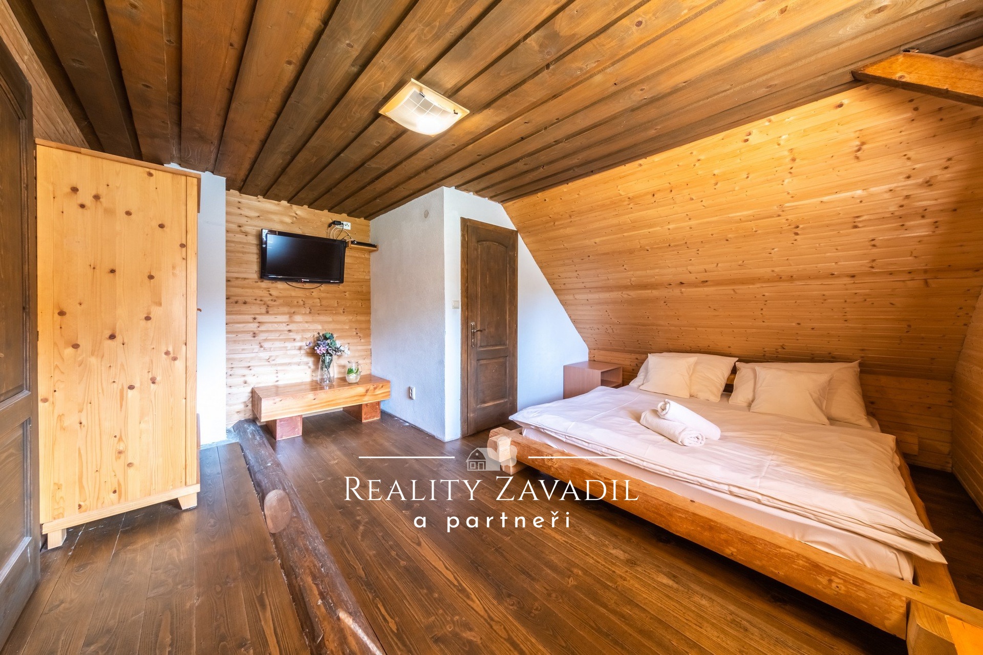 2. Kysucká chalupa (104 m²): Tato dřevěná chalupa z roku 2006 pojme až 8 osob a nabízí stylový interiér s krbovými kamny, kuchyní a pohodlnými ložnicemi, což z ní činí ideální útočiště pro rekreaci.