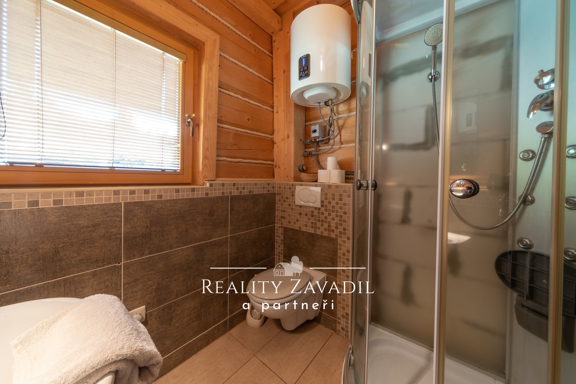 Ložnice s 2 postelemi a 1x rozkládací pohovkou, koupelna se sprchovým koutem a wc