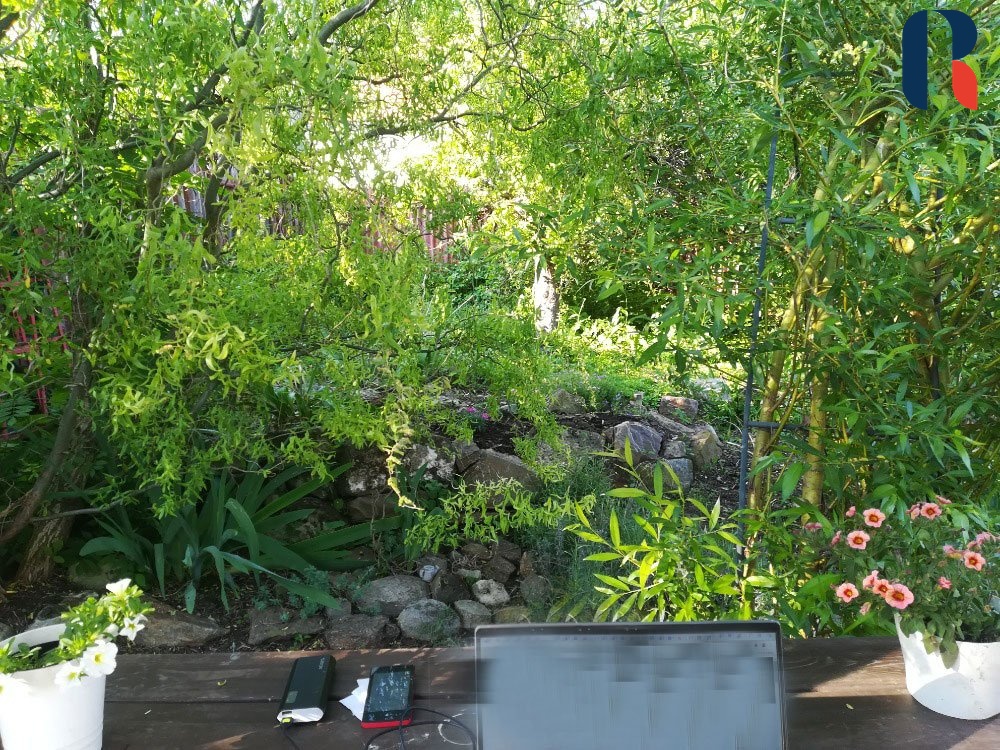 Na dům navazuje venkovní kuchyň se sporákem ( propan butan), pecí, udírnou, grilem, dřezem a úložnými prostory. Z venkovní kuchyně je vstup do samostatné místnosti, kterou lze využít k jakémukoliv účelu ( aktuálně tělocvična se saunou). Zahrada je rovinatá se vzrostlými stromy ( jabloně, broskev, mandloň, vrby aj.), ovocnými keři a je ideálním místem pro klidné venkovní posezení. Nachází se zde krytý uzamykatelný přístavek, který může sloužit uvnitř jako úložný prostor zahradnických potřeb, dřeva, nářadí a z venkovní části jako kryté venkovního posezení.