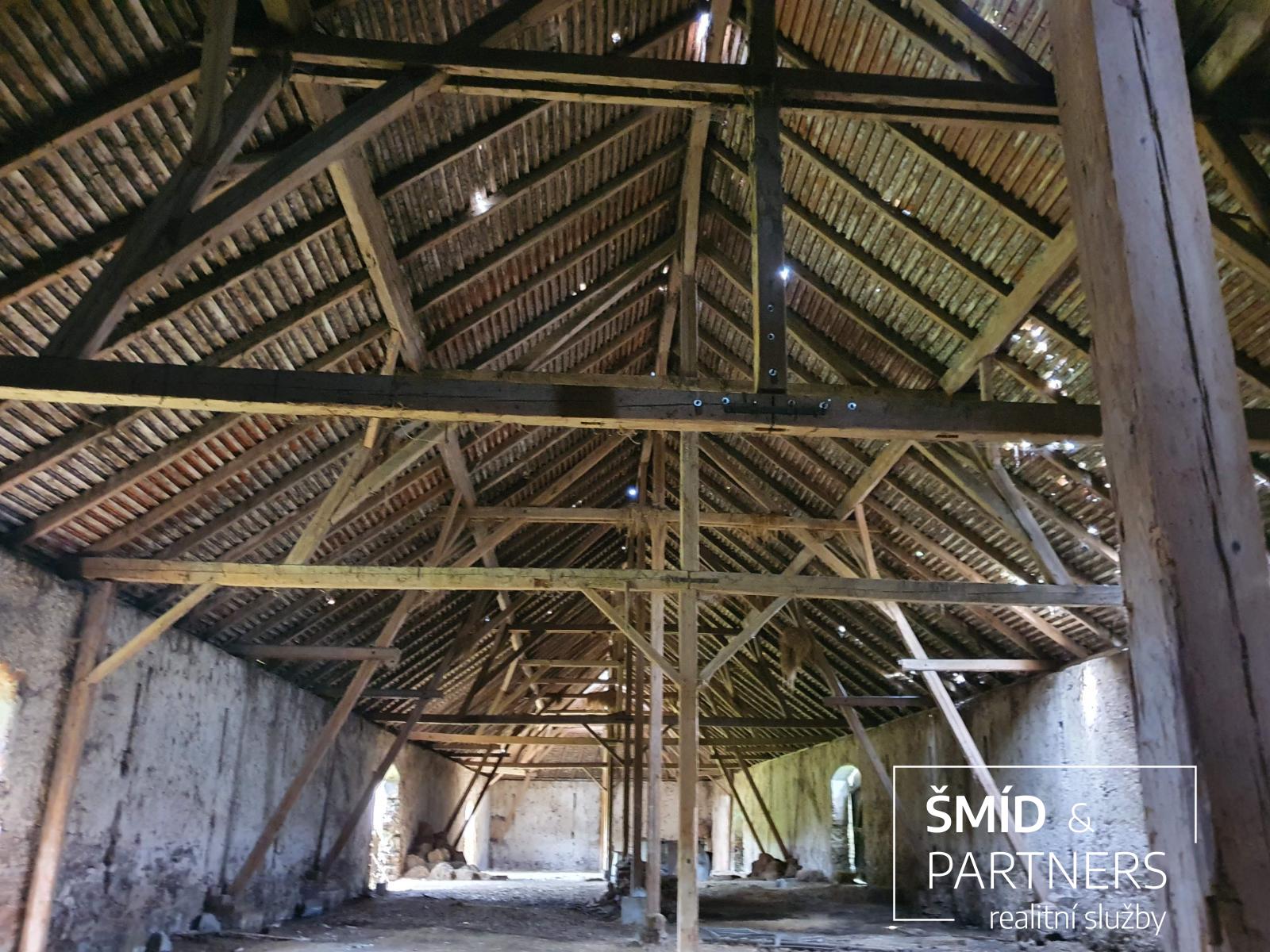Konstrukce krovu je v zachovalém stavu, pouze s nutnými dílčími opravami. Střešní krytina je na konci životnosti. Jedná se o velice hezký objekt s širokou škálou budoucího využití. Obecní vodovodní řad, tlaková kanalizace trafostanice pro vybudování přípojek je vzdálena cca 80 m od hranice pozemku.