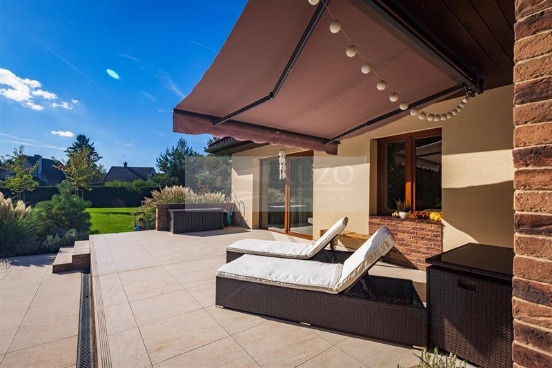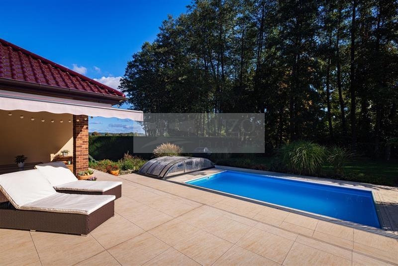 Dům je postaven z cihel Porotherm 40 a zateplen. Okna jsou 6-ti komorová z trojskel a na všech oknech jsou instalovány venkovní rolety (Alukov) na centrální, ale i samostatné ovládání. Okolí domu je monitorováno kamerovým systémem. Zdrojem vytápění domu a teplé vody je tepelné čerpadlo zn. Nibe, topení je podlahové. V celém domě je na podlahách použit vinyl. Objekt je zcela klimatizován. V interiérech domu jsou použity na stěnách moderní tapety, v koupelnách a na WC je netradiční obklad a dlažba. Nad celým domem je půdní prostor o velikosti cca 120 m2 a lze zde realizovat případnou vestavbu bytu s možností samostatného vchodu, na půdu je přivedena elektřina a přívod klimatizace. Na zahradě jsou okrasné dřeviny. V přední části pozemku je zhotoven okrasný plot s kováním, do kterého jsou umístěny dvě posuvné příjezdové brány na dálkové ovládání. Zadní část a boční části oplocení jsou zhotoveny z pletiva, které je kryto vzrostlými tújemi v počtu cca 200 ks s automatickou závlahou. Objekt je napojen na rozvod obecního vodovodu, na pozemku je vlastní čistička odpadních vod.