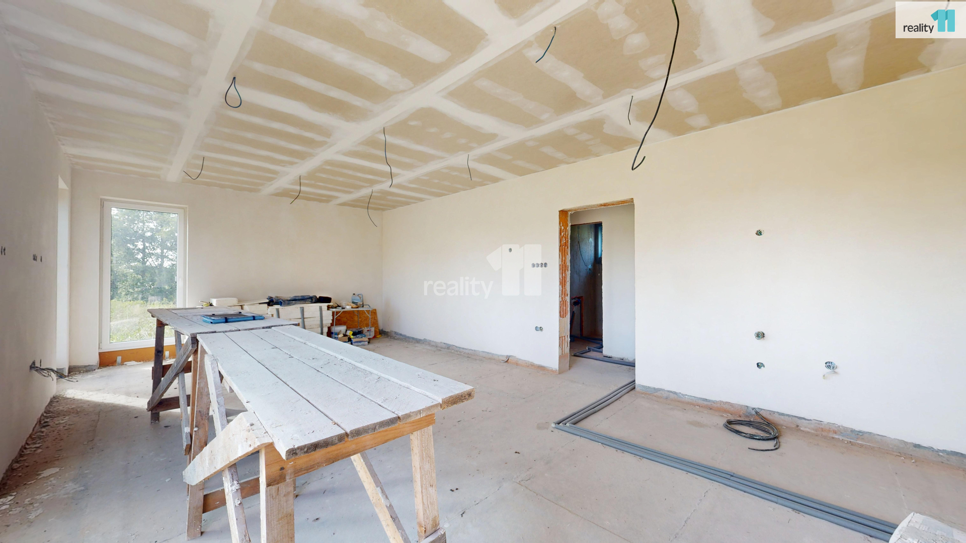 Reality 11 Humpolec Vám exkluzivně zprostředkují koupi rozestavěného rodinného domu v obci Kojetín, která leží pouhých 7 minut jízdy od Města Havlíčkův Brod, Kraj Vysočina. Nemovitost je situována na krásném okrajovém pozemku o celkové výměře 1.514 m², z toho zastavěná plocha stavbou činí 165 m². Dům je připraven k dokončení dle Vašich vlastních představ a nabízí velký potenciál jak pro trvalé bydlení, tak jako bydlení a kombinace s podnikáním. Dispozice domu je velkorysá: 6+kuchyňský kout o celkové podlahové ploše cca 182 m² (součet obytných ploch ze dvou podlaží), ideální pro větší rodinu nebo dvougenerační bydlení. Rozvržení místností a výměry 1.NP (120,8 m² + 6,6 m² schodiště): Zádveří (6,20 m²), Technologie (6,00 m²), Garáž (25,00 m²), Chodba/schodiště (6,60 m²), Obývací pokoj + jídelna + kuchyňský kout (42,70 m²), Spíž (1,60 m²), Chodba (4,40 m²), Pokoj I. (10,80 m²), Pokoj II. (10,80 m²), Koupelna (4,70 m²), samostatné WC (2,10 m²), 2.NP (61,70 m²): Chodba (8,90 m²), Koupelna (7,20 m²), samostatné WC (1,90 m²), Ložnice (12,40 m²), Šatna (5,50 m²), Pokoj III. (13,80 m²), Pokoj IV. (12,00 m²). Zahájení stavby v roce 2021 a poslední stavební úpravy provedeny v roce 2025, dokončeny jsou rozvody vody, elektřiny, odpadů, slaboproudu a síťových prvků, plánované bylo podlahové vytápění. Z inženýrských sítí je do domu zaveden obecní vodovod, odpad je řešen kanalizací s přečerpávací jímky do veřejné kanalizace, plyn je na hranici pozemku. Máme pro Vás k dispozici 3Dvirtuální prohlídku nemovitosti od společnosti 3Dvirtualcz, dále také kompletní projektovou dokumentaci a půdorysy celého objektu. Obec Kojetín se nachází 6 km jihovýchodně od města Havlíčkův Brod, v klidné krajině Českomoravské vrchoviny. Díky výborné dostupnosti autem i autobusem je ideálním místem pro klidné rodinné bydlení s dosahem kompletní občanské vybavenosti v Havlíčkově Brodě (školy, školky, nemocnice, obchody, sportoviště). V případě zájmu o více informací kontaktujte kdykoliv makléře společnosti. Ev. číslo: 27545.