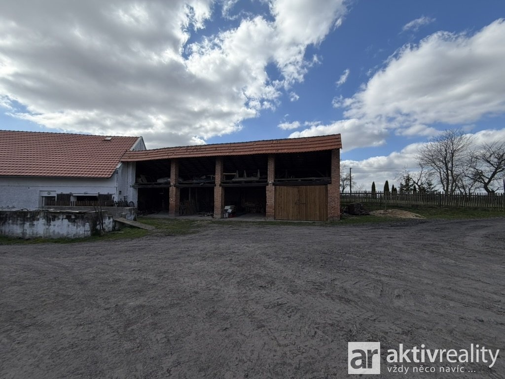 Za stodolou se nacházejí také dva polootevřené přístřešky o celkové ploše 209 m², které prakticky rozšiřují úložné a provozní možnosti areálu – ideální například pro techniku, dřevo či sezónní materiál.