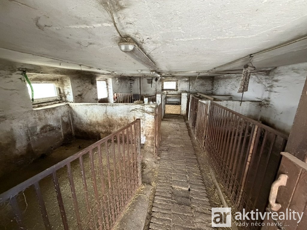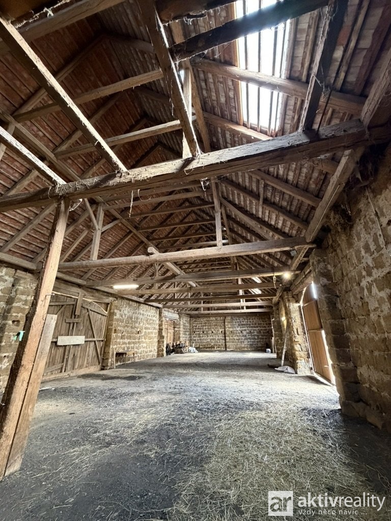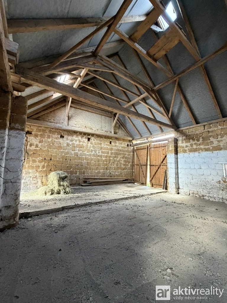 Naproti obytné části se nacházejí dvě hospodářské budovy – menší a větší chlévy, které jsou v dobrém technickém stavu. Větší chlév má přibližně 320 m², menší okolo 35 m². Obě stavby mají pevné zdivo, jsou suché a stabilní, a nad nimi se rozkládá rozsáhlý půdní prostor vhodný pro skladování nebo další využití. Na stodolu dále navazuje vysoký otevřený přístřešek o ploše přibližně 122 m², který nabízí další prostor například pro techniku či materiál.