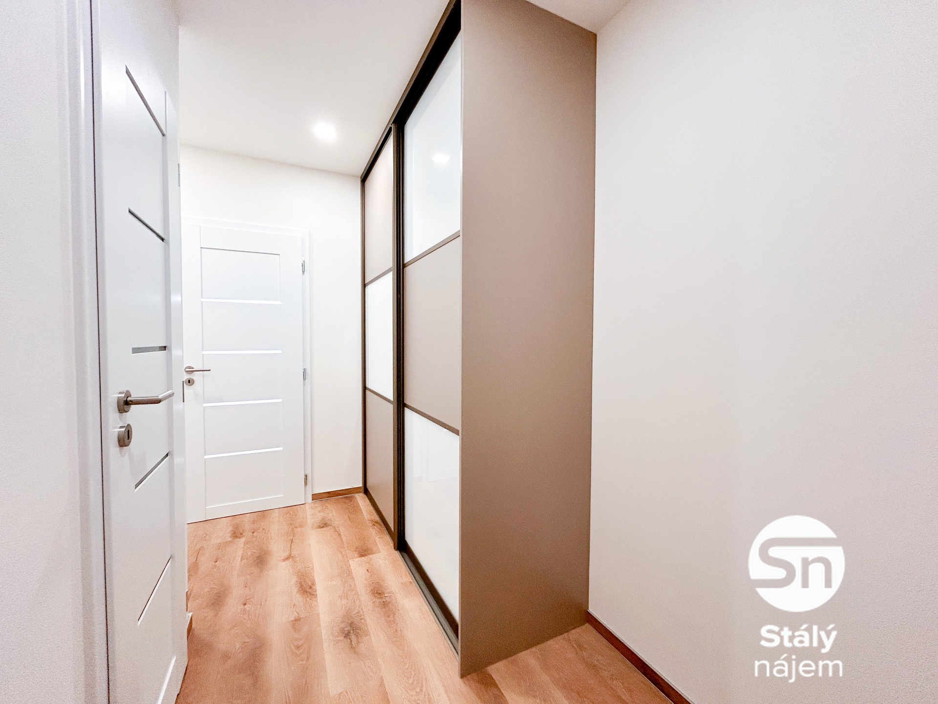 Interiér tvoří obývací pokoj s kuchyňským koutem vybaveným novou linkou se všemi vestavnými spotřebiči (lednice, myčka, trouba, indukce, mikrovlnka). V koupelně se nachází sprchový kout a umyvadlová sestava, v předsíni je k dispozici prostorná vestavěná skříň. K bytu náleží sklepní kóje a praktickým bonusem je venkovní konstrukce na sušení prádla přímo za oknem.