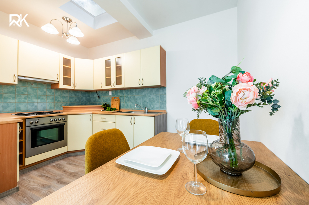 Byt se rozkládá na celkové ploše 48,3 m² a nachází se ve čtvrtém, posledním podlaží čtyřpodlažního domu. Díky své poloze má byt příjemný výhled a dostatek přirozeného světla. Dispozice bytu zahrnuje útulný obývací pokoj, který je ideální pro relaxaci a odpočinek, a kuchyni, která poskytuje dostatečný prostor pro každodenní vaření.