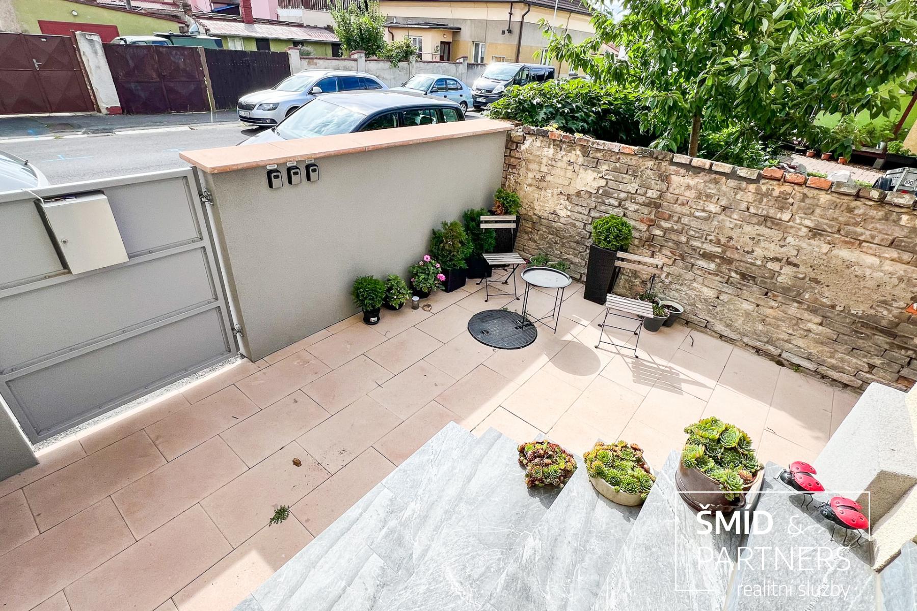 Kompletní rekonstrukce domu proběhla před dvěma lety, nově vznikly tři byty, ateliér, kanceláře a sauna.