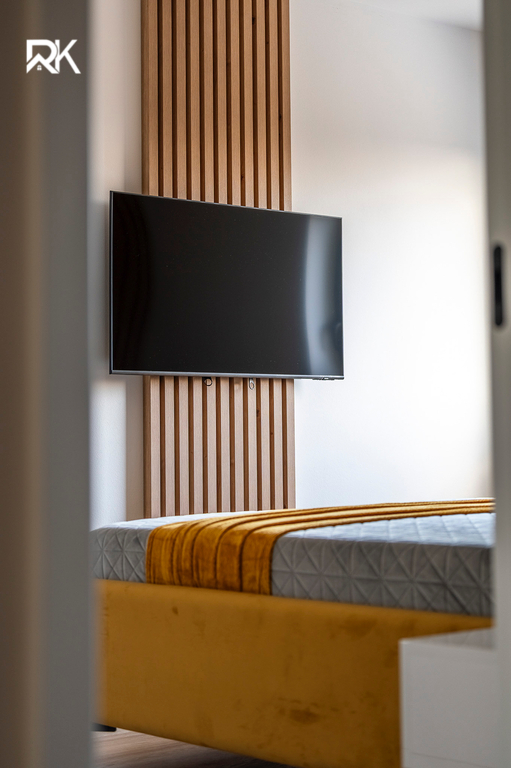 TV Samsung v každé obytné místnosti, pračka a sušička.