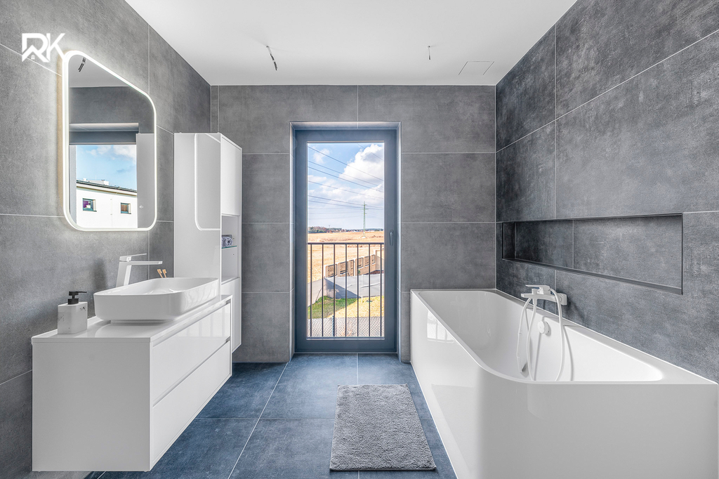 Technické parametry a standardy Základem vysokého standardu domu je obálka budovy s vynikajícími izolačními schopnostmi. Výplně otvorů tvoří hliníková okna s izolačními trojskly a skrytými panty, zajišťující špičkový tepelný i akustický komfort. V obývací části je instalován třímetrový HS portál (posuvně-zdvižný systém), který bezbariérově propojuje interiér se zahradou.