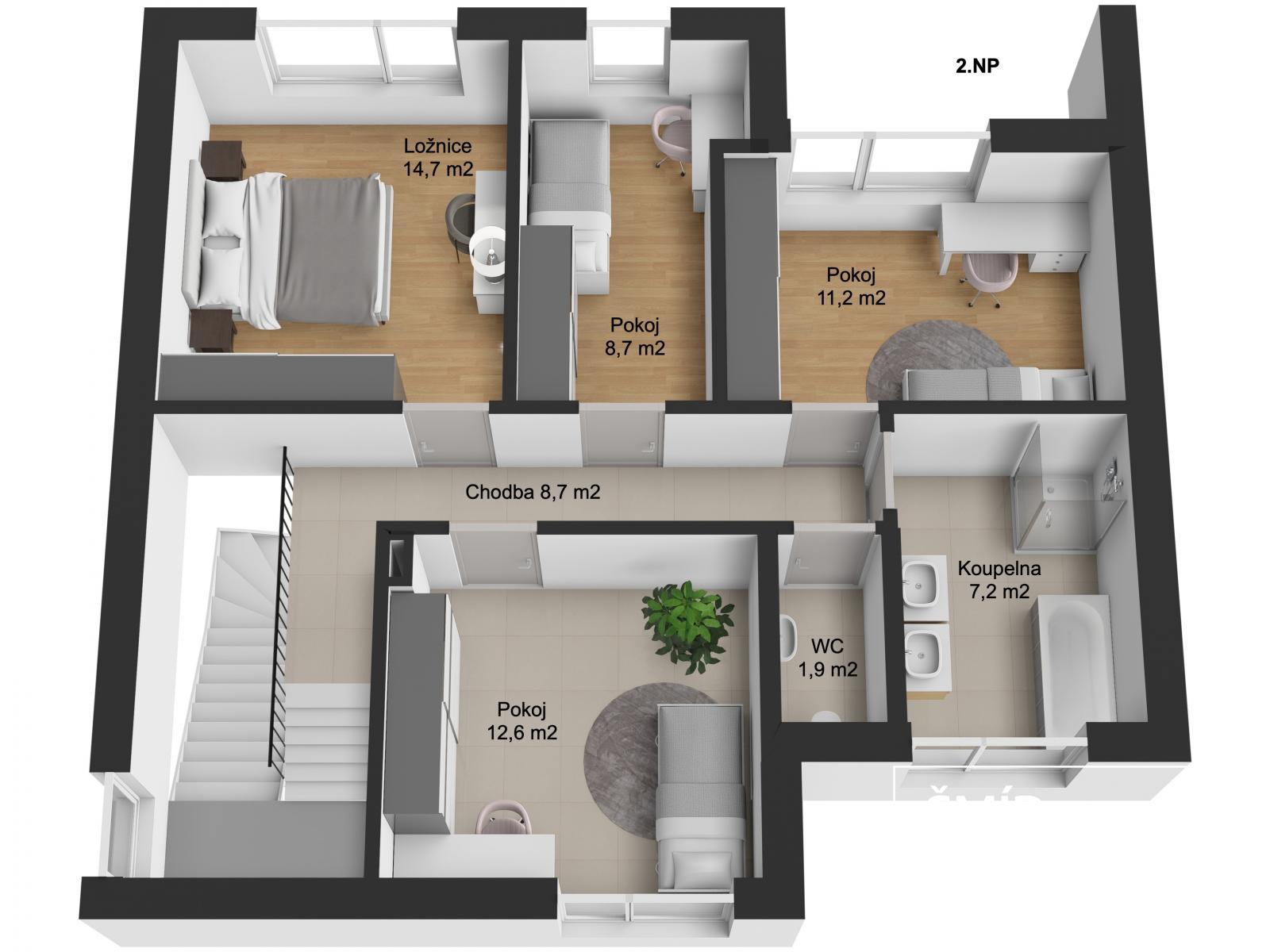 - Čtyři další pokoje vhodné pro ložnice, pracovnu nebo dětské pokoje