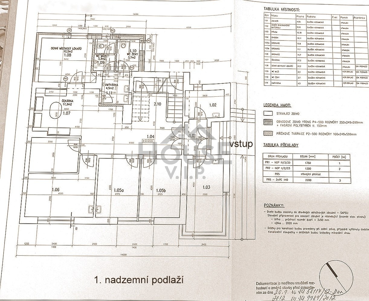 - vnitřní parkoviště pro cca 5 vozidel o velikosti 170 m2,