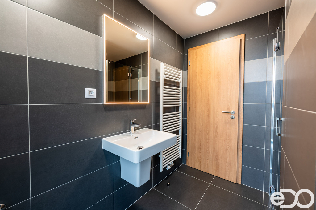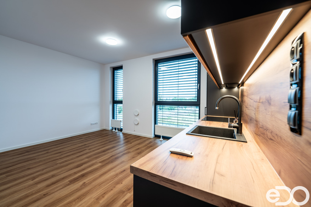 Jednotka je vybaven novou kuchyňskou linkou včetně spotřebičů, v koupelně je navíc instalováno podlahové vytápění a komfort zvyšují také předokenní žaluzie na dálkové ovládání. K jednotce náleží také sklep o velikosti 2,5 m². Jedná se o ateliér, kde není možné přihlásit trvalé bydliště.