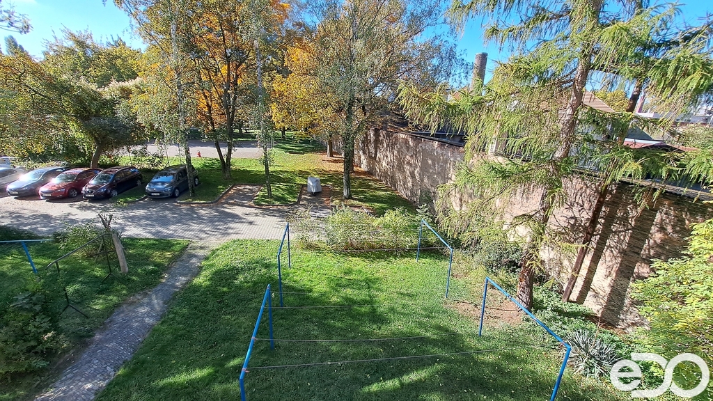 Součástí bytu je menší balkon orientovaný do ulice a sklepní kóje, která poskytuje další úložný prostor.