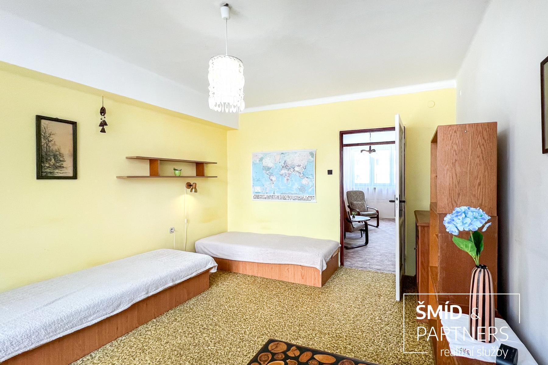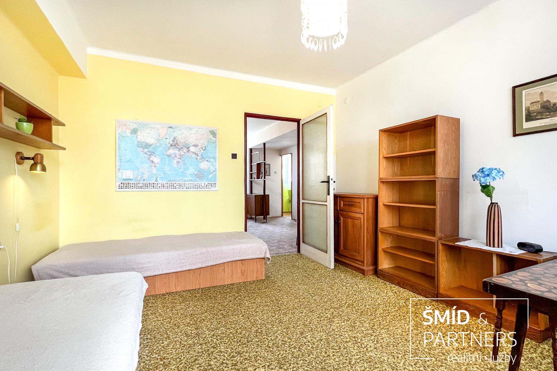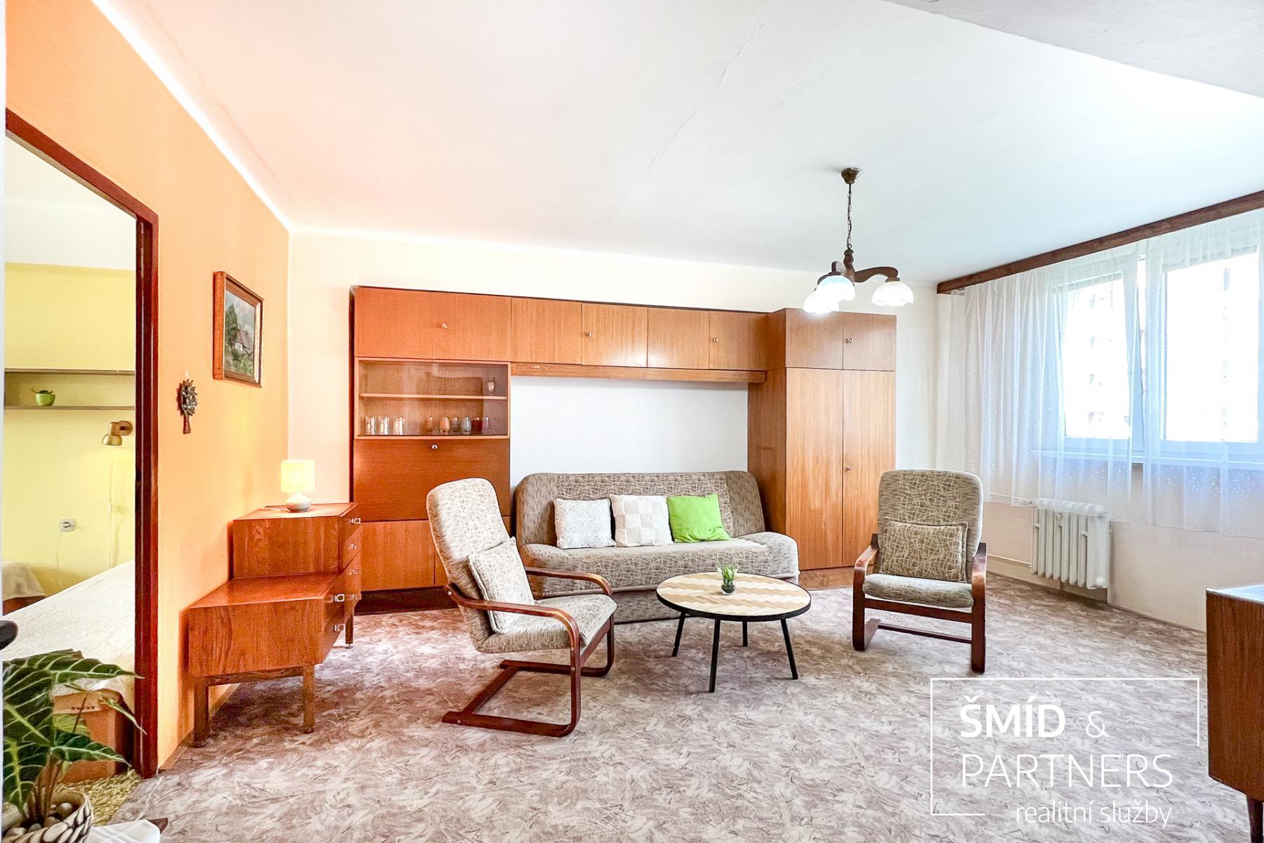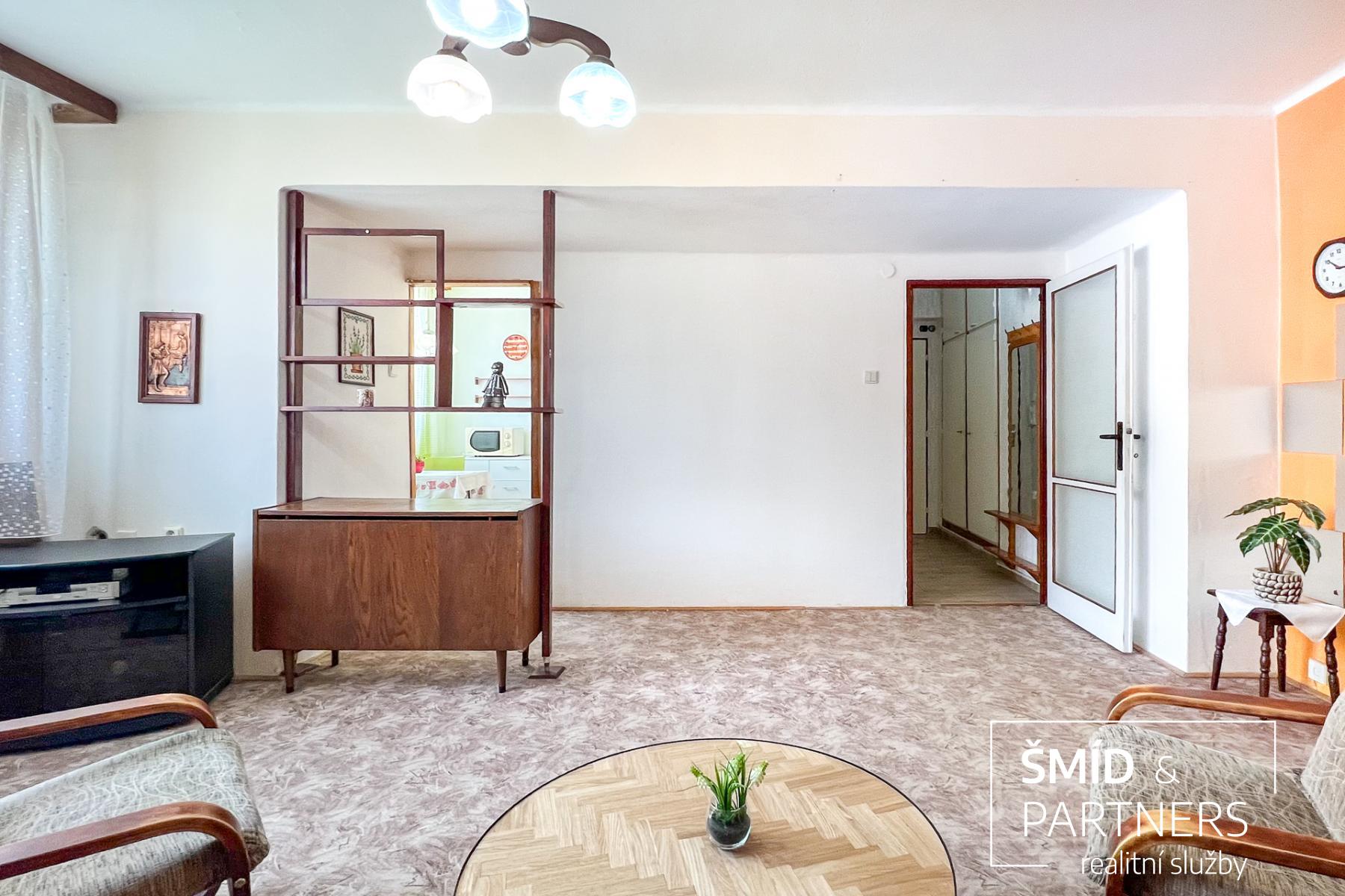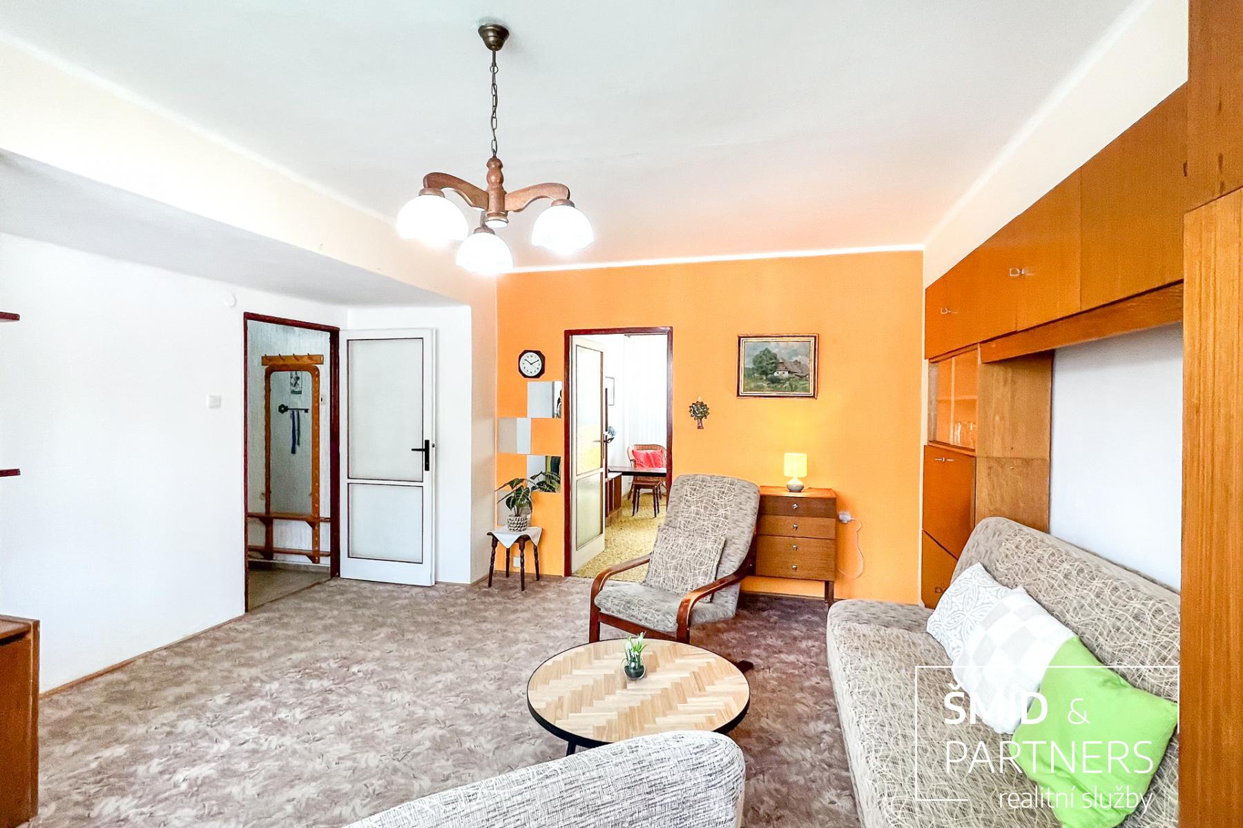 Byt s celkovou výměrou 52m2 je umístěn ve 3.patře bytového domu s výtahem a nabízí se k dlouhodobému pronájmu plně vybaven starším nábytkem.