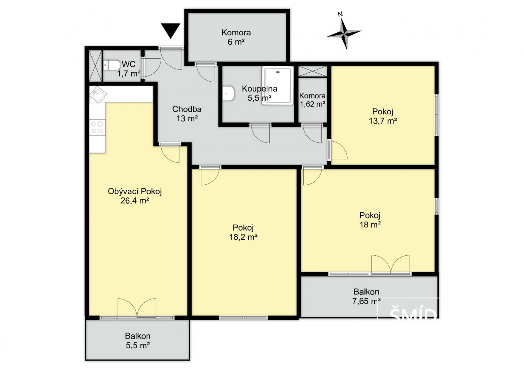 Pronájem bytu 4+kk - 104 m2 s dvěma balkony a 2 parkovacími stáními