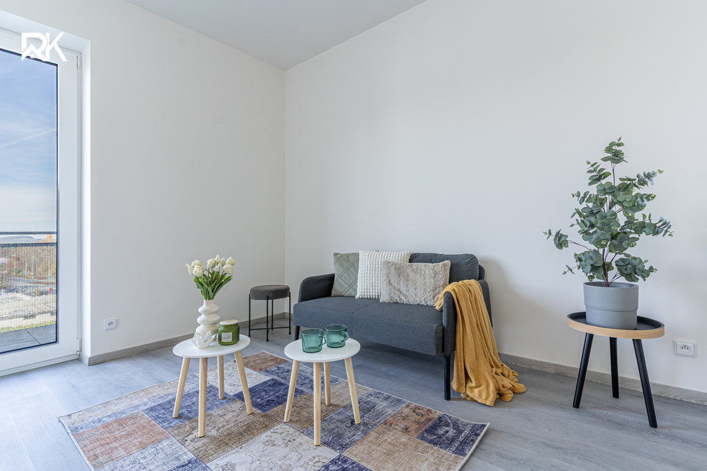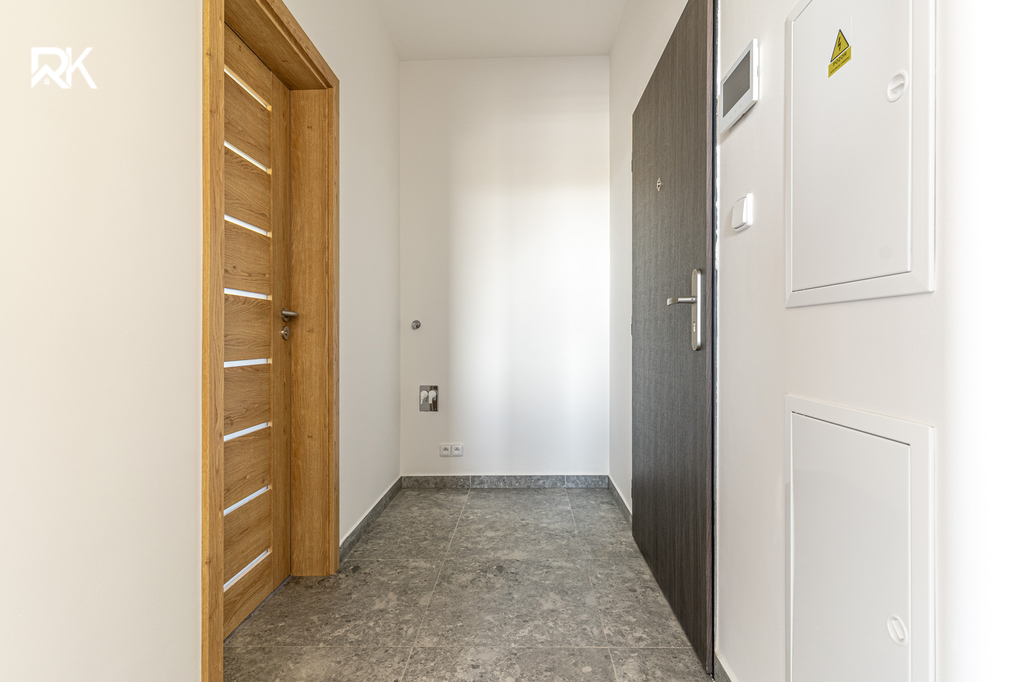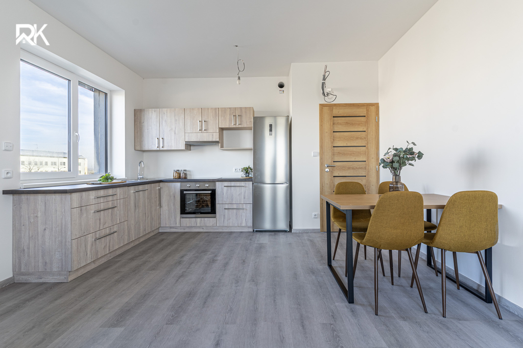 Byt je dokončen v nadstandardním provedení. Součástí vybavení je moderní kuchyňská linka včetně spotřebičů a klimatizace. Dispozice je praktická a plně funkční, ideální pro jednotlivce nebo pár.