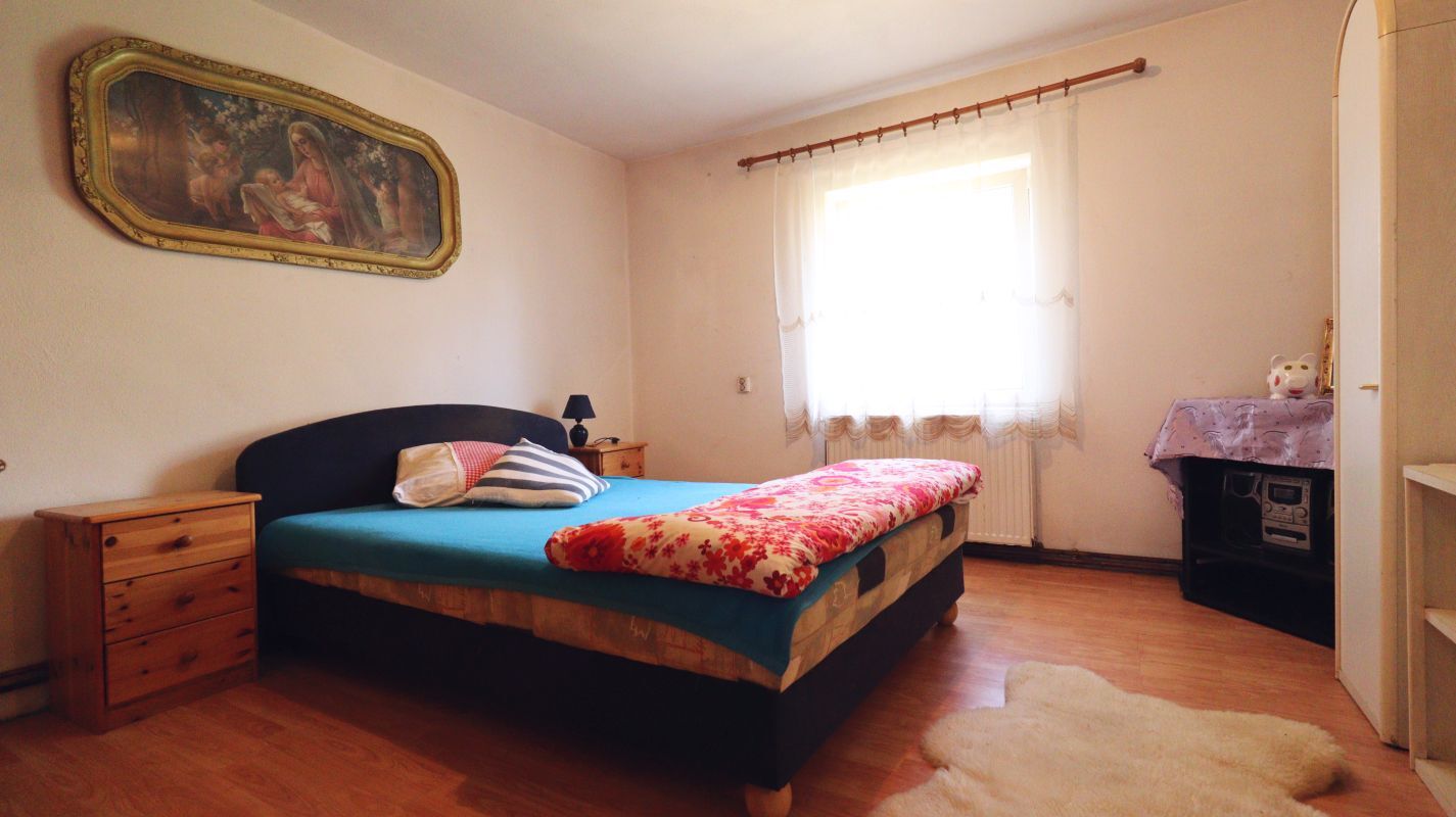 Jedná se o samostatně stojící prostorný zděný dům se zastavěnou plochou cca 130 m2 na pozemku, o celkové výměře 313 m2 s protilehlou zahrádkou a kolnou o celkové výměře 127m2. V celém domě jsou vyměněna plastová okna včetně vstupních dveří. Výhodou tohoto domu je dispoziční řešení; v přízemí o dispozici 3+1 o obytné ploše cca 98 m2, najdete vše podstatné pohromadě: vstup do domu přes terasu 30 m2, zádveří, prostorná chodba, spíž, obytná kuchyně, obývací pokoj s krbovými kamny a dva pokoje. Dále koupelna, samostatné WC, technické zázemí pro kotel a vstup do podkroví. V podkroví o obytné ploše cca 50m2 jsou tři místnosti a půda., z toho dva rozestavěné. Pod terasou se nachází sklep cca 10m2.
