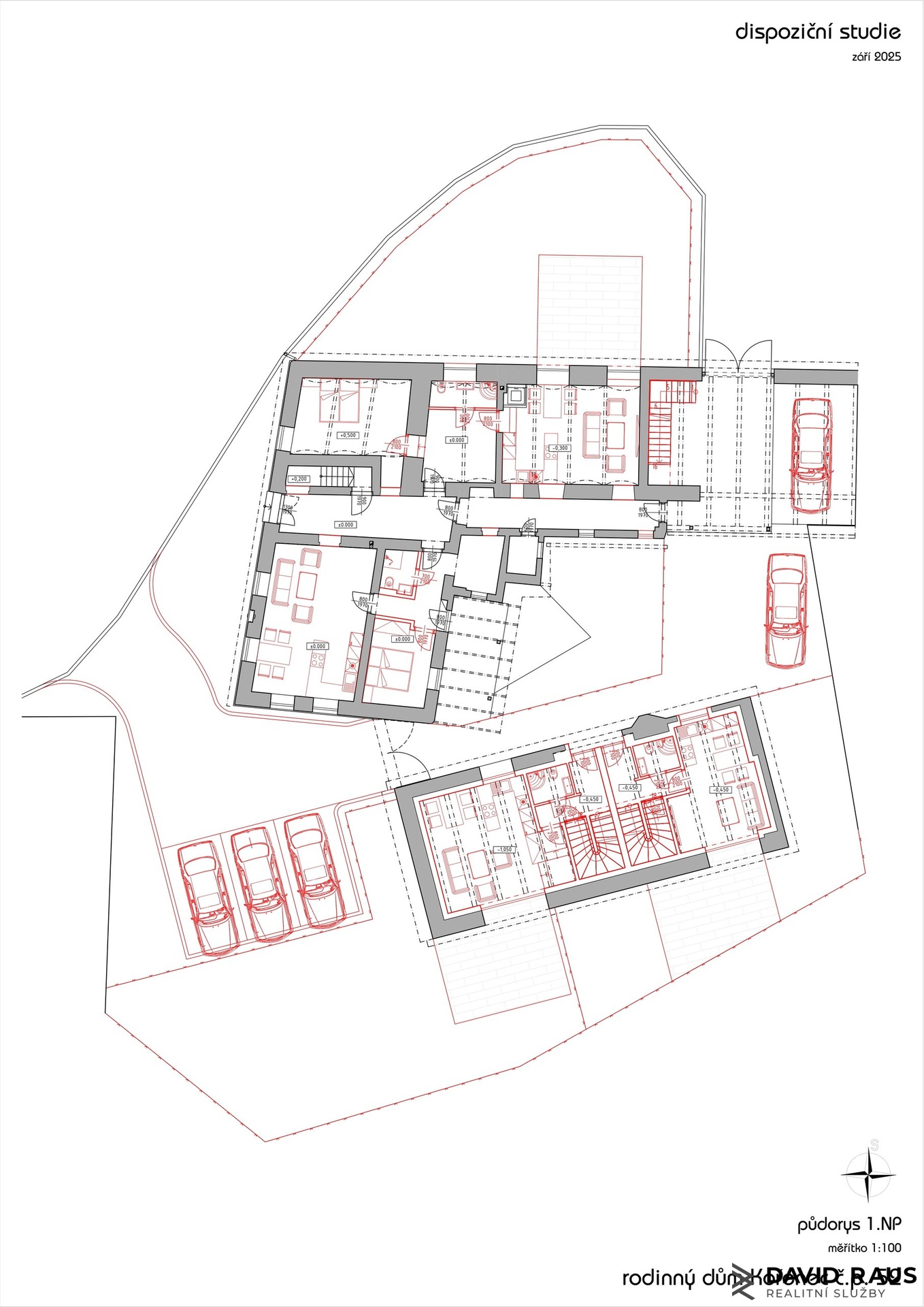 Součástí prodeje je také hotová dispoziční studie pro přestavbu usedlosti na apartmánový dům.
