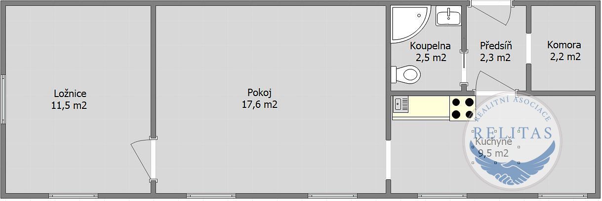 | Dispozice/podlahová plocha: | 2+1/46 m² |