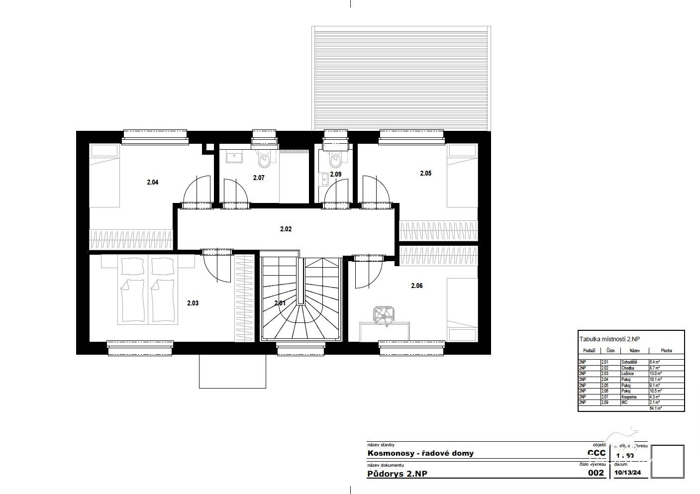 Dům č. 9 je řadový trojdům o dispozici 5+kk a ploše 127 m2, stojící na pozemku o výměře 294 m2. V domě jsou 4 samostatné pokoje, 1 obývací pokoj s kuchyňským prostorem, 2x koupelna s WC, další samostatné WC, úložný prostor pod schodištěm, místo pro technologie a garáž.
