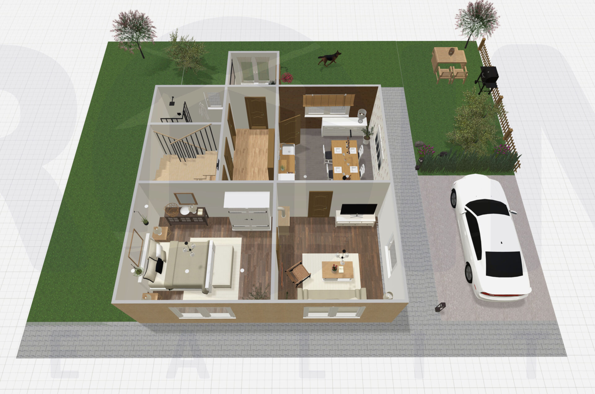 Rozloha celé parcely činí 320 m2, zastavěná plocha domu 92 m2.
