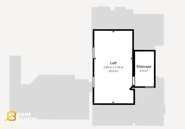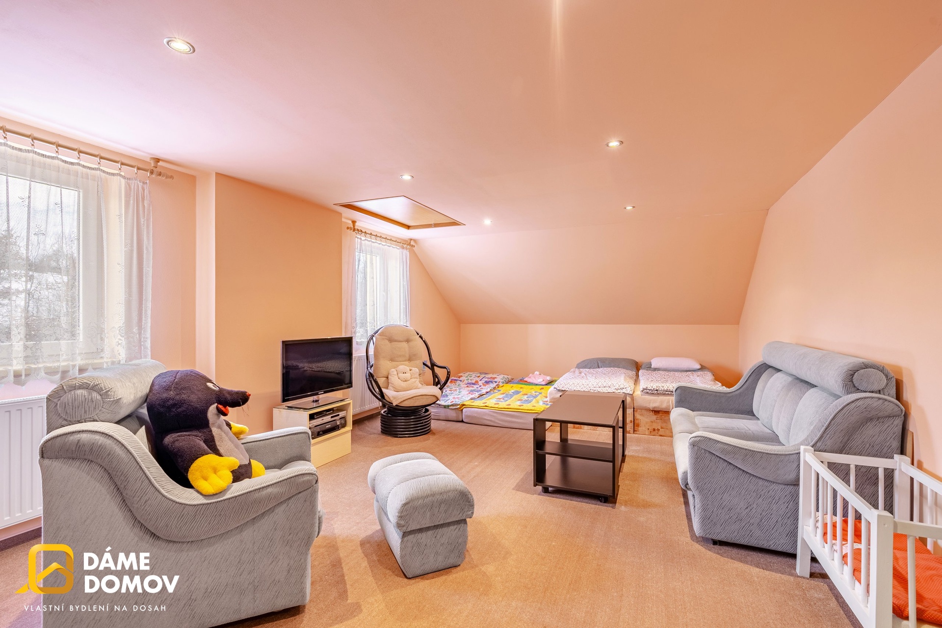 - 3. NP: pokoj pro hosty nebo prostorná dětská herna, šatna / úložný prostor