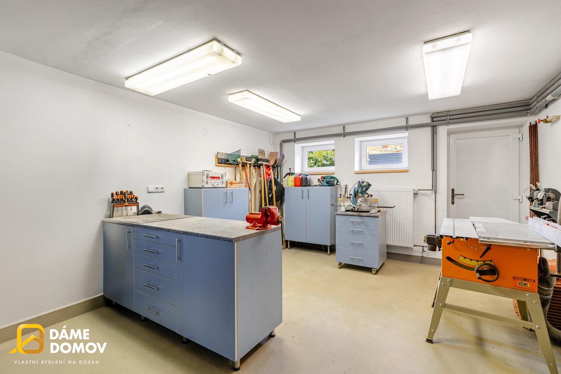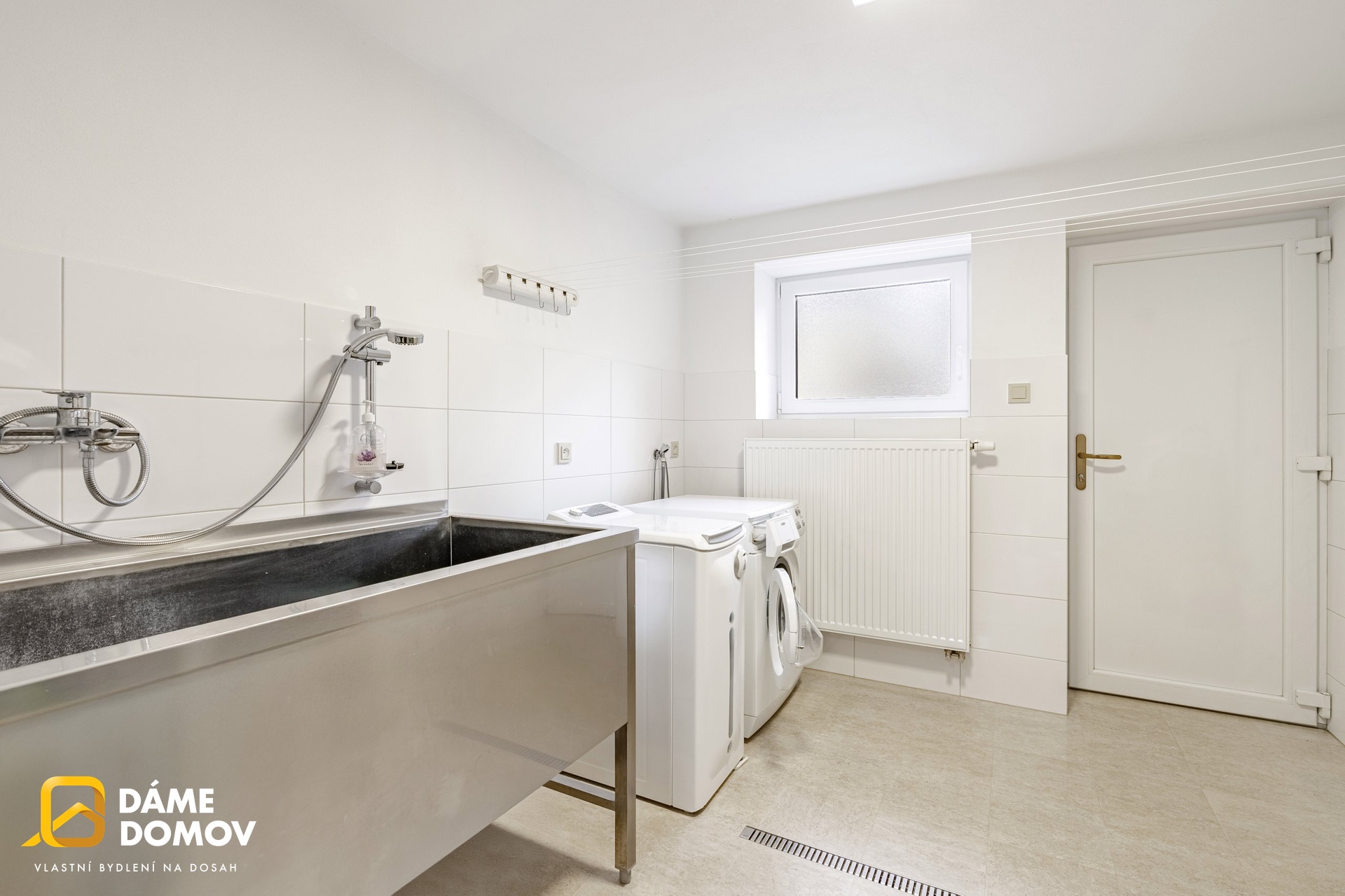 Dům je kompletně podsklepený a nabízí výjimečné technické a užitné zázemí: