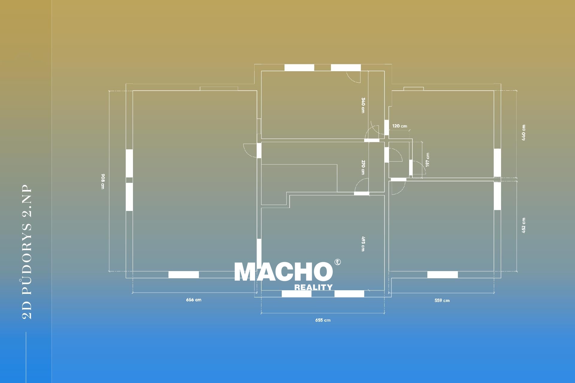Ve druhém nadzemním podlaží, přístupném po schodišti ze vstupní haly, se nachází bytová jednotka o dispozici 3+1. Je tvořena velkým obývacím pokojem, ložnicí, dětským pokojem, kuchyní, koupelnou s vanou, sprchovým koutem a toaletou. Kuchyňská linka je plně vybavena spotřebiči. Celková užitná plocha bytu činí 173 m2.