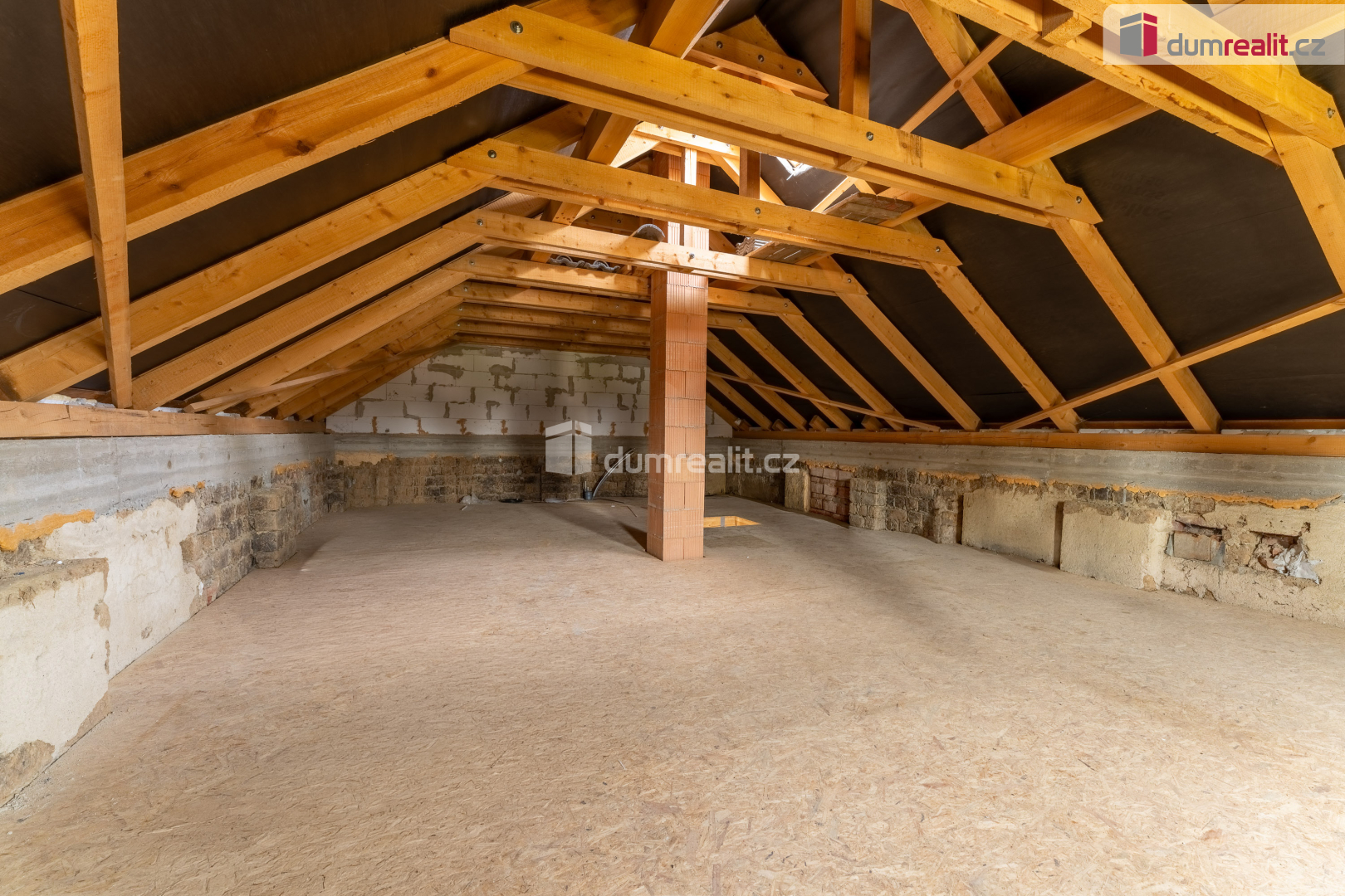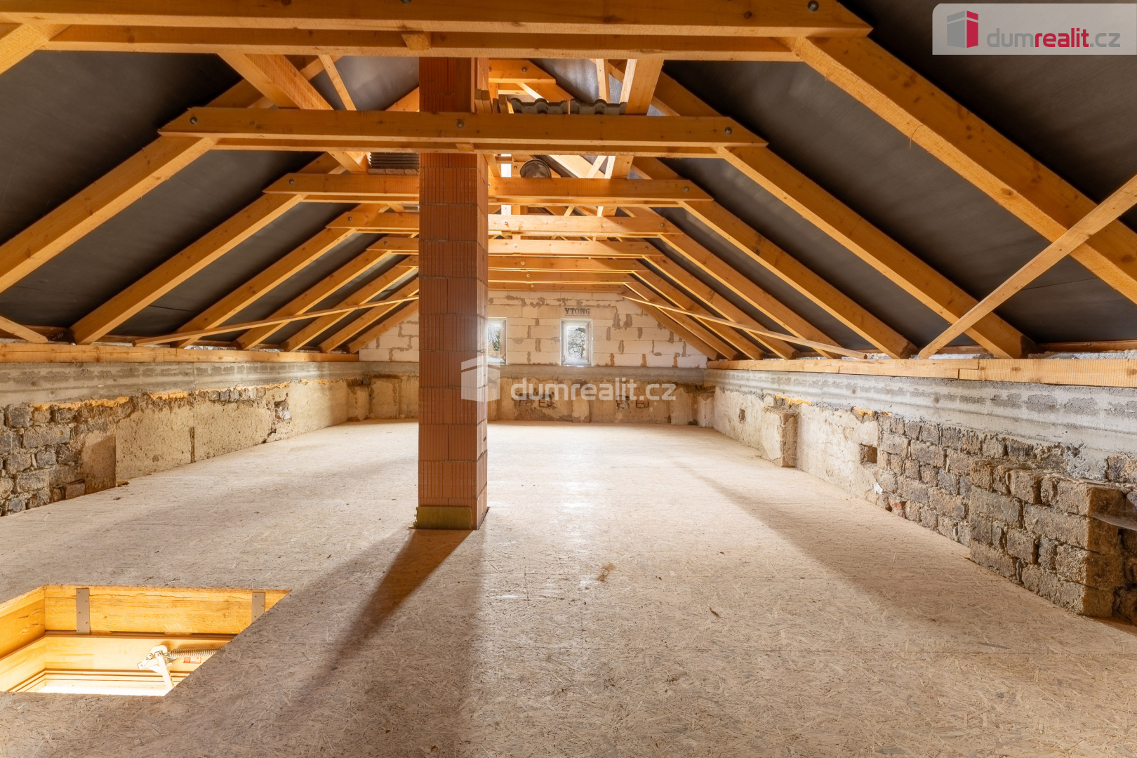 Podkroví nabízí volný potenciál: dětský pokoj, home office s výhledem, ateliér, knihovna — záleží na vás, co v tom prostoru najdete.