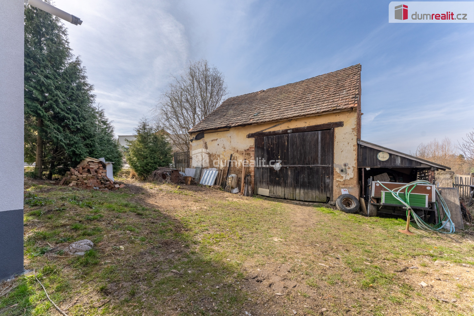 Vedlejší stavba (výměnek) je dalším kusem plátna, který čeká na nápady. A stodola uzavírá pozemek jako příjemný bonus pro ty, kdo mají sklony k projektu nebo řemeslu.