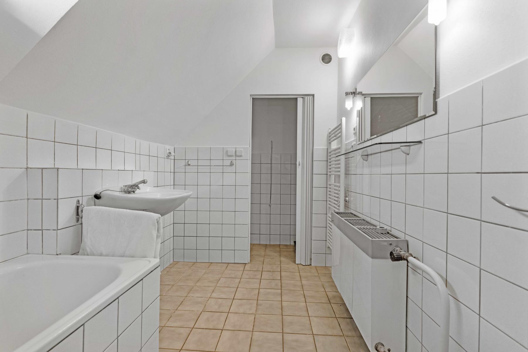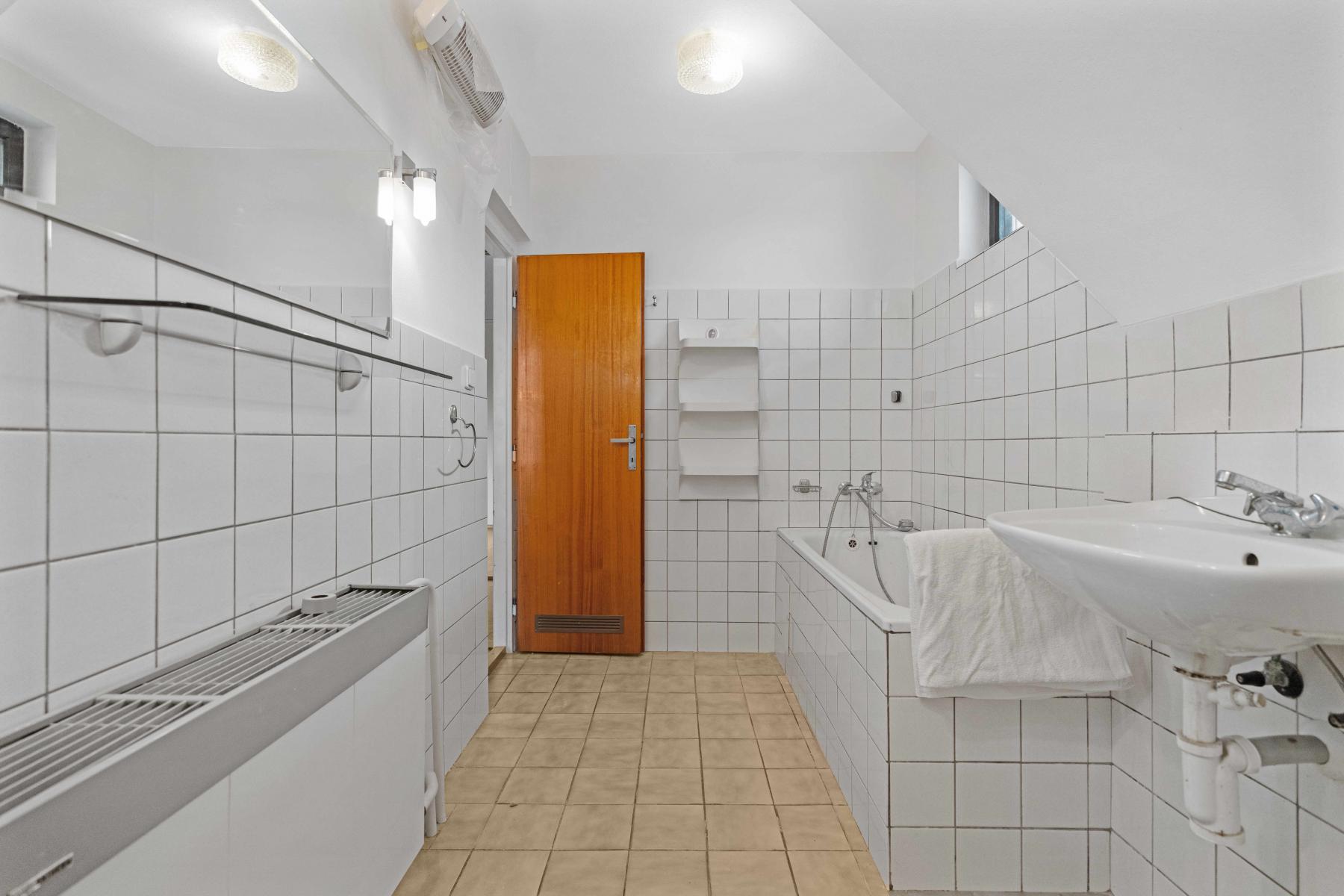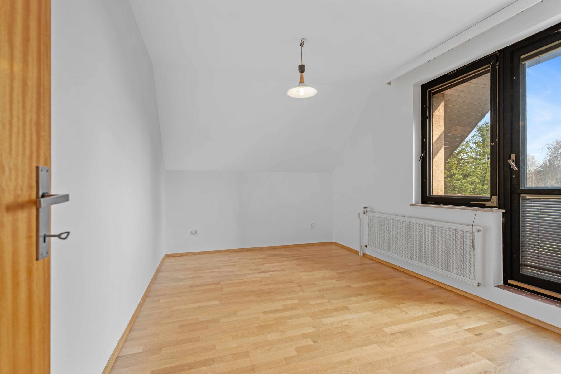 V patře jsou k dispozici tři samostatné pokoje koupelna s komorou a toaleta. Interiér působí velmi udržovaně, s dřevěnými prvky a parketovými podlahami, které dodávají domu příjemnou atmosféru.