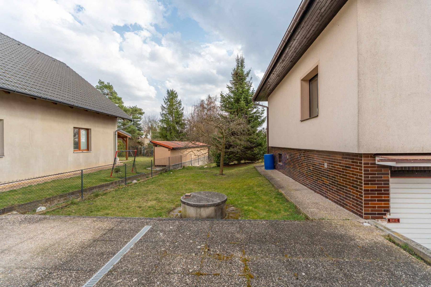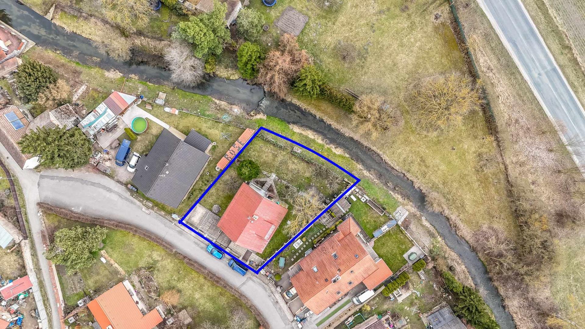 Na pozemku o výměře 519 m2 se nachází vzrostlá, udržovaná zahrada, která nabízí soukromí a příjemné místo pro relaxaci. Terén za zahradou se svažuje směrem k říčce Vlkavě, což dodává místu jedinečný charakter, přičemž samotná nemovitost se nenachází v záplavovém území.