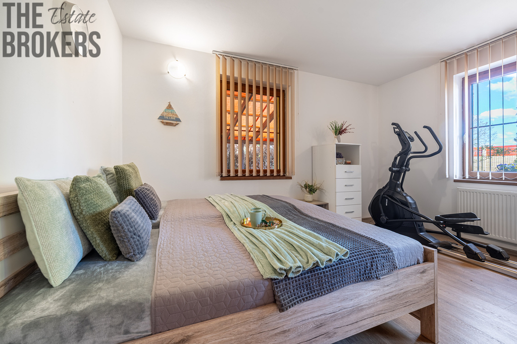 - Luxusní vybavení: V každém pokoji je klimatizace energetické třídy A++ pro komfortní klima po celý rok. Součástí domu jsou krbová kamna s rozvodem do radiátorů nebo možností vytápění elektrokotlem dle vašich preferencí.
