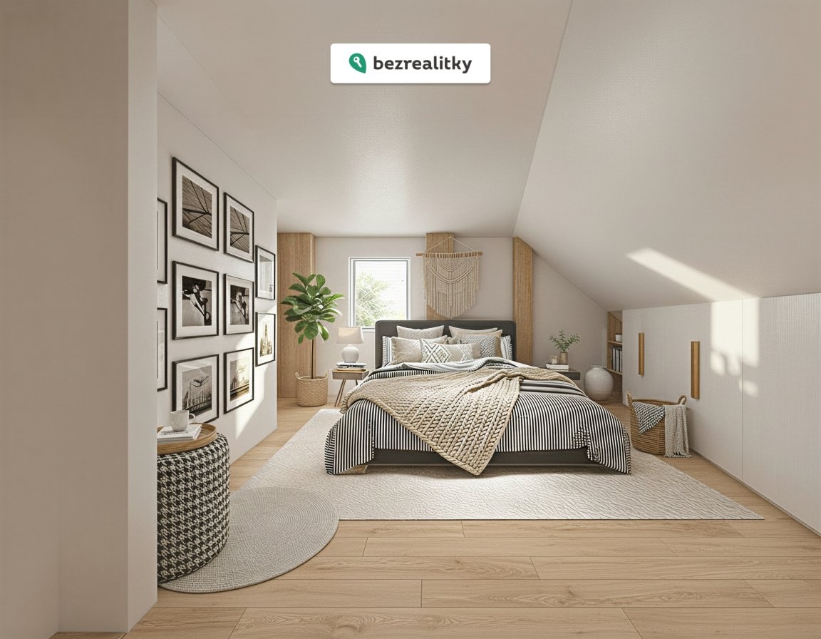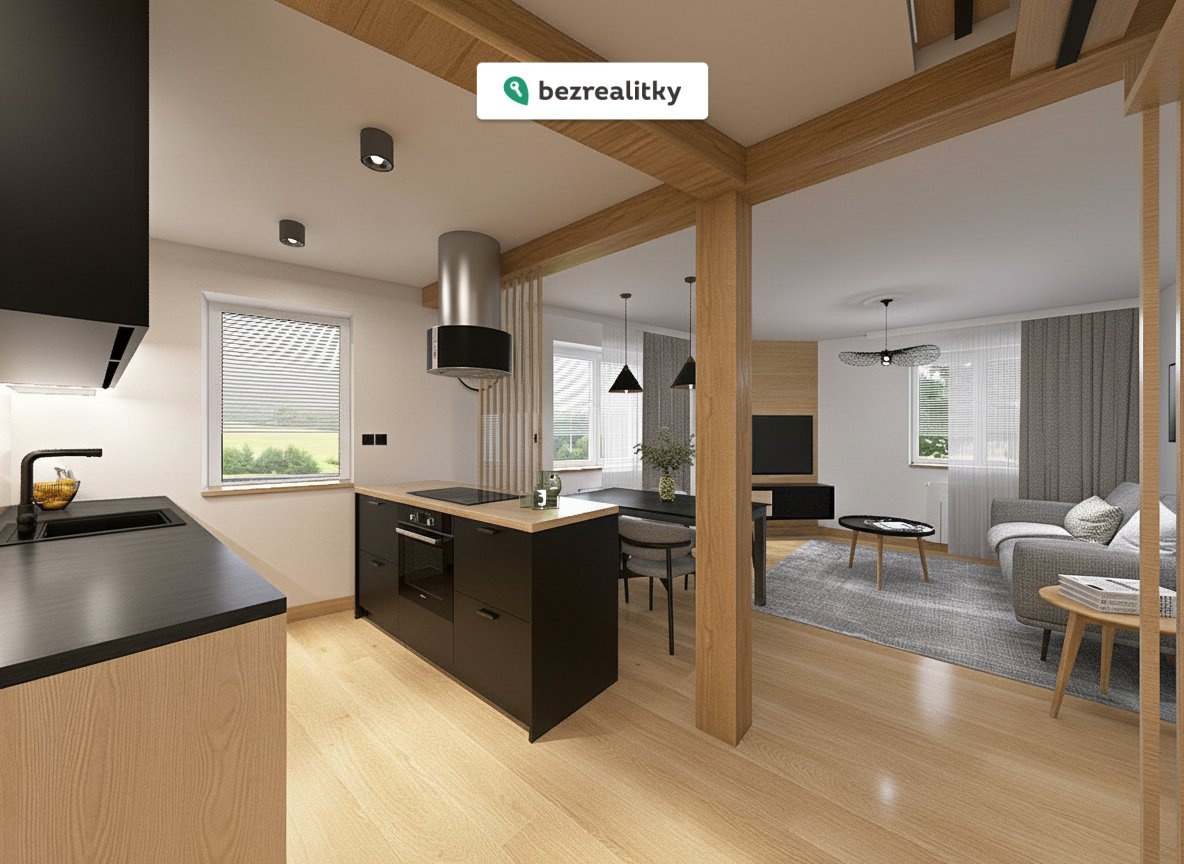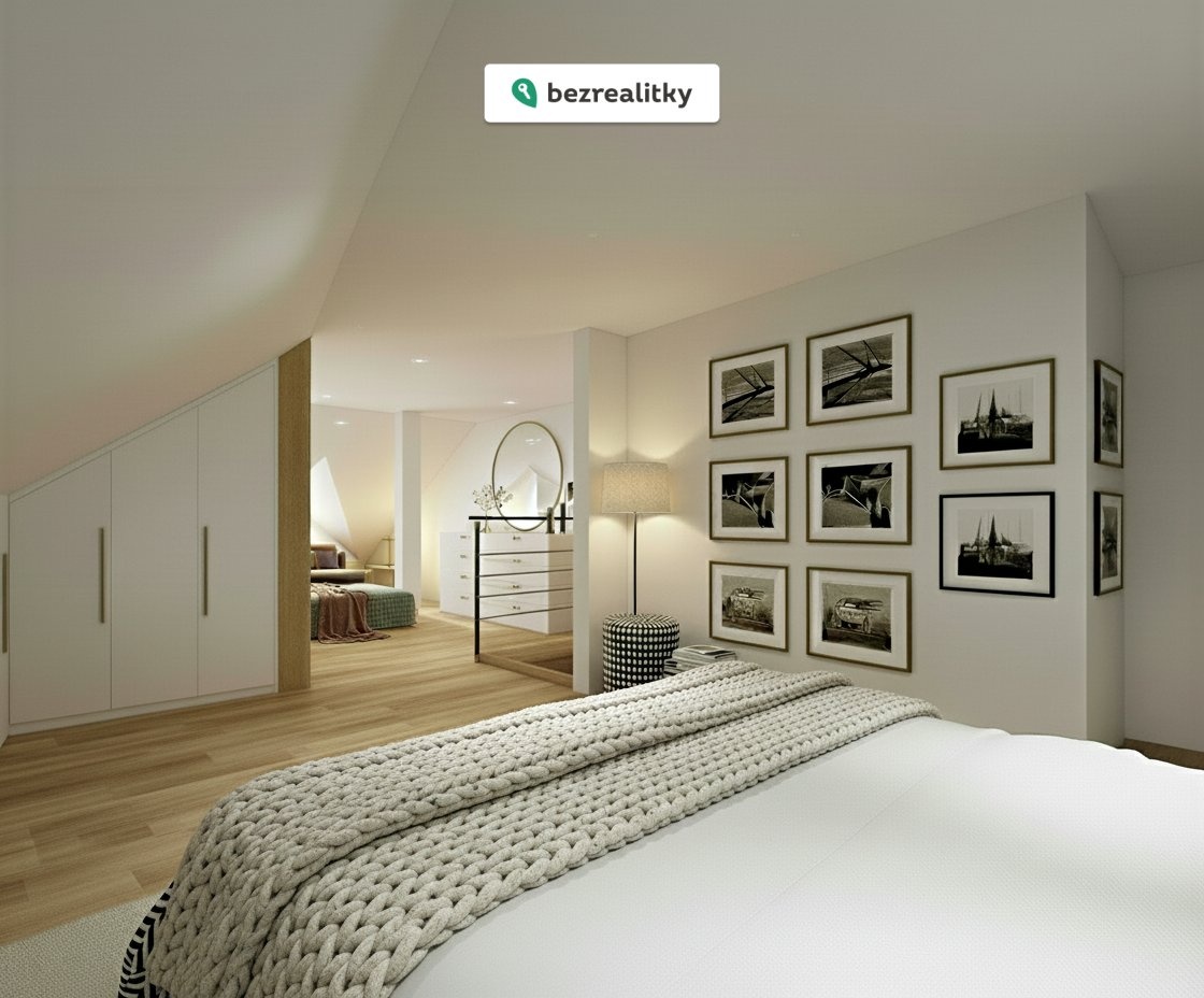 • Apartmán 2 (1. NP + podkroví, loft) 3+kk — 64 m²