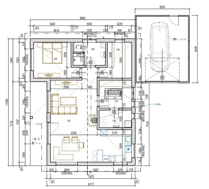 Prodej samostatně stojícího RD, dřevostavby bungalovu o dispozici 3+kk, z roku 2022, od dodavatele Wolf System na betonové základové desce doplněného o betonovou garáž Prefa 6x5m.