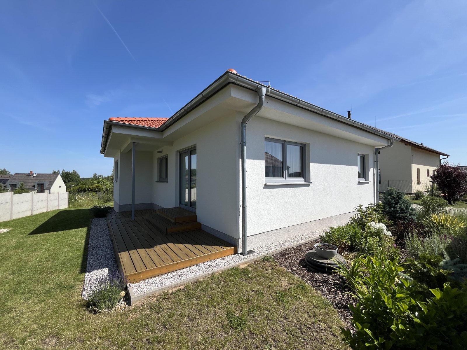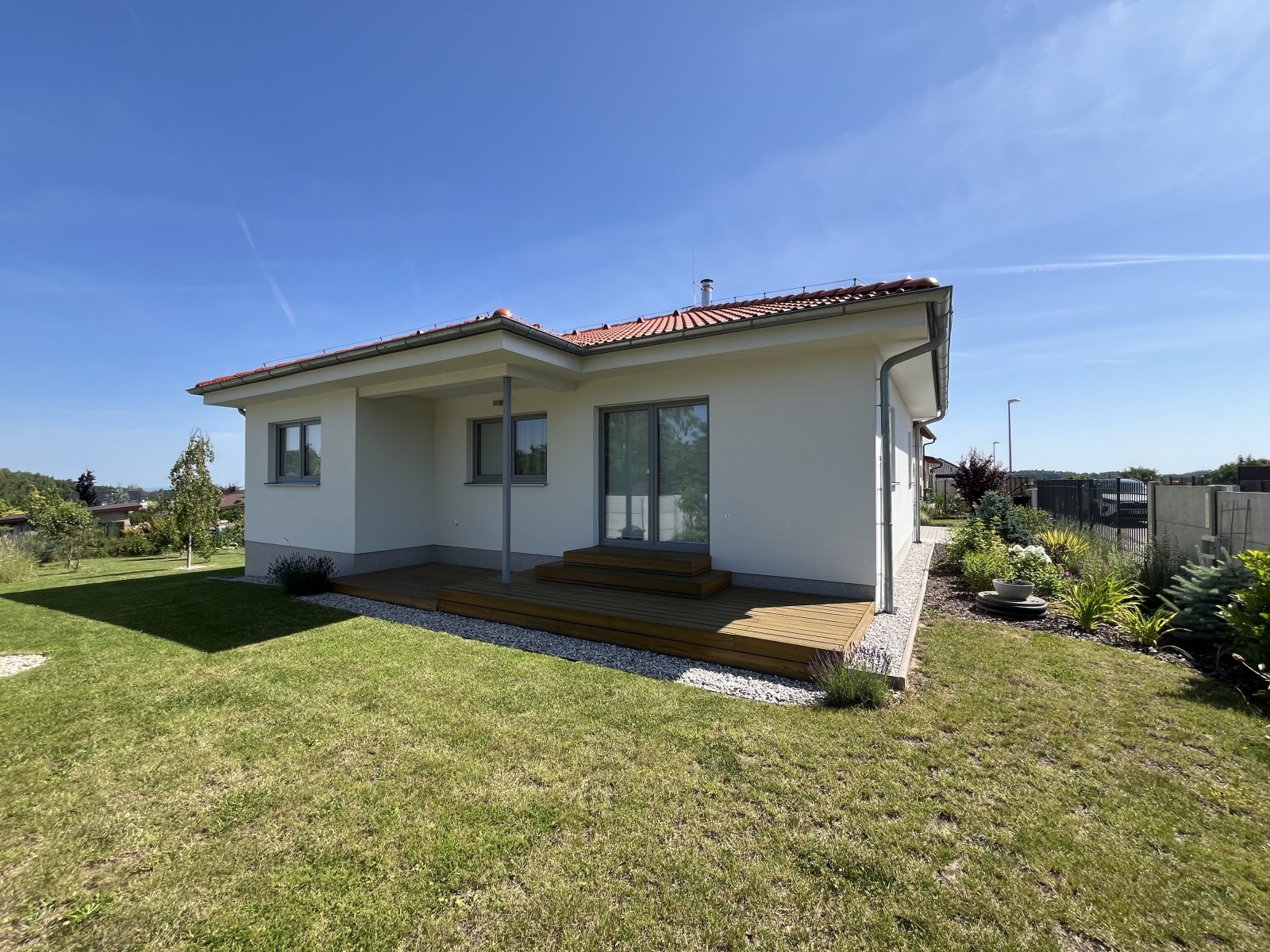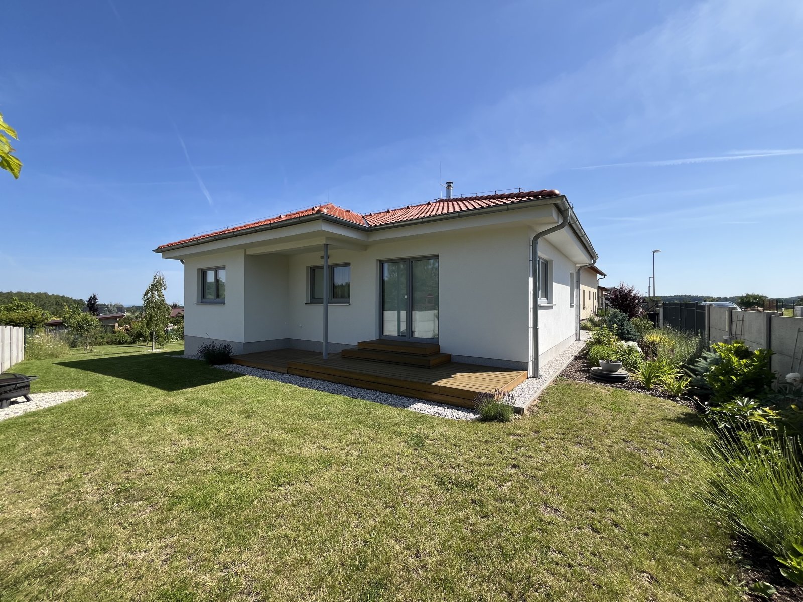 Prodej samostatně stojícího RD, dřevostavby bungalovu o dispozici 3+kk, z roku 2022, od dodavatele Wolf System na betonové základové desce doplněného o betonovou garáž Prefa 6x5m.