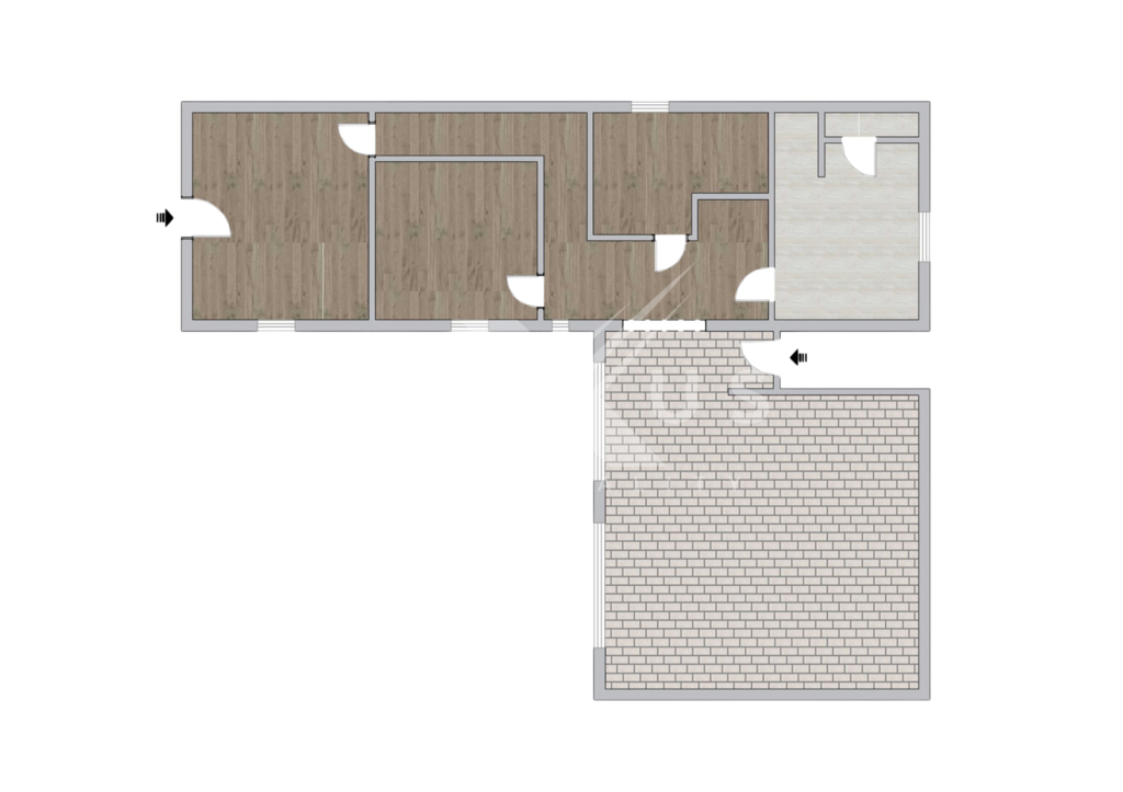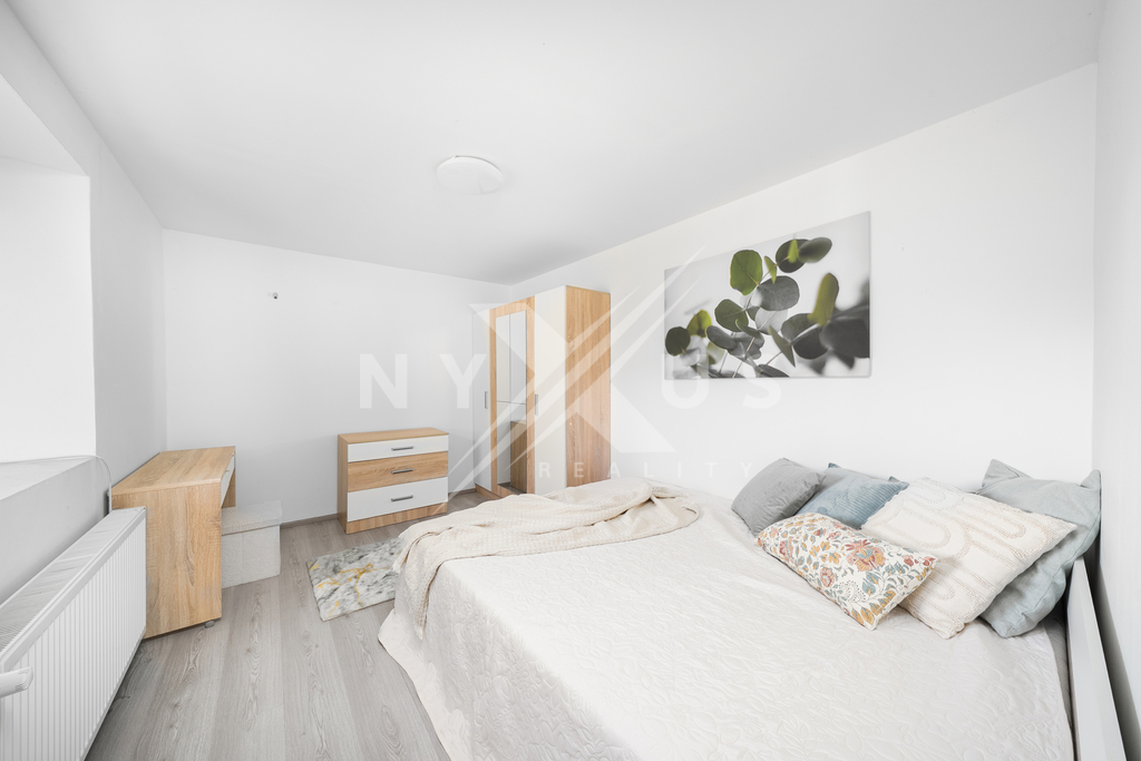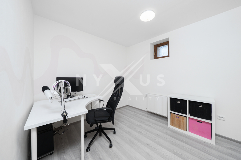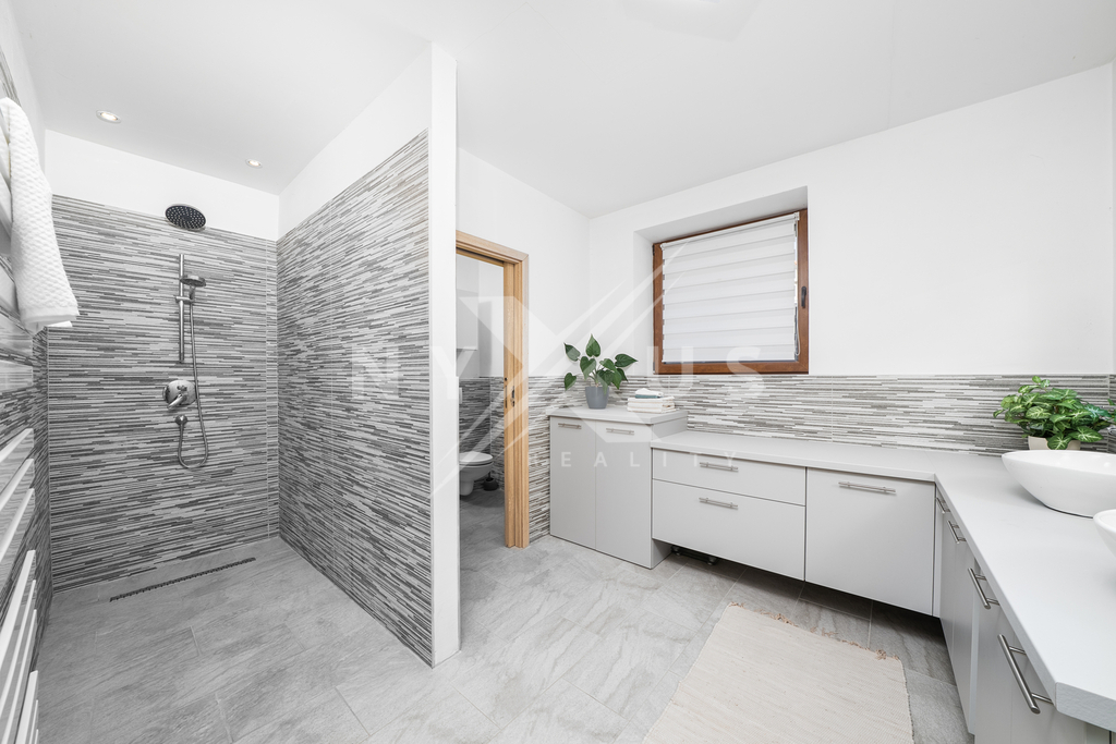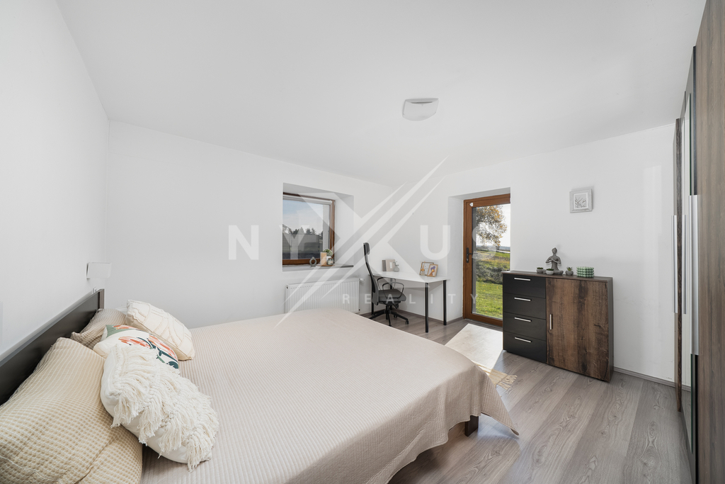 Dům disponuje celkem třemi ložnicemi, z nichž jedna je připravena pro vytvoření wellness zóny – můžete si tu snadno vybudovat vlastní oázu klidu se saunou či vířivkou. Koupelna je prostorná, doplněná o samostatné WC.