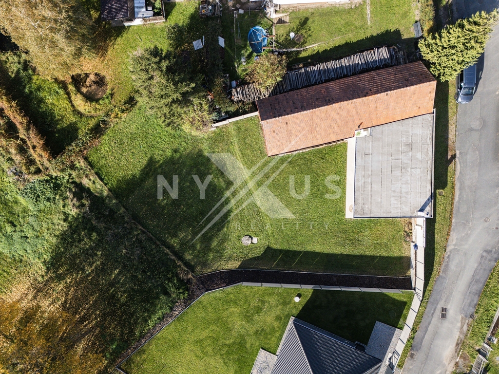 Na pozemku se rozkládá udržovaná zahrada s krásným výhledem do okolní krajiny. Je ideální pro odpočinek, dětské hry i zahradničení. Díky své velikosti poskytuje dostatek soukromí, a přitom působí otevřeně a vzdušně.