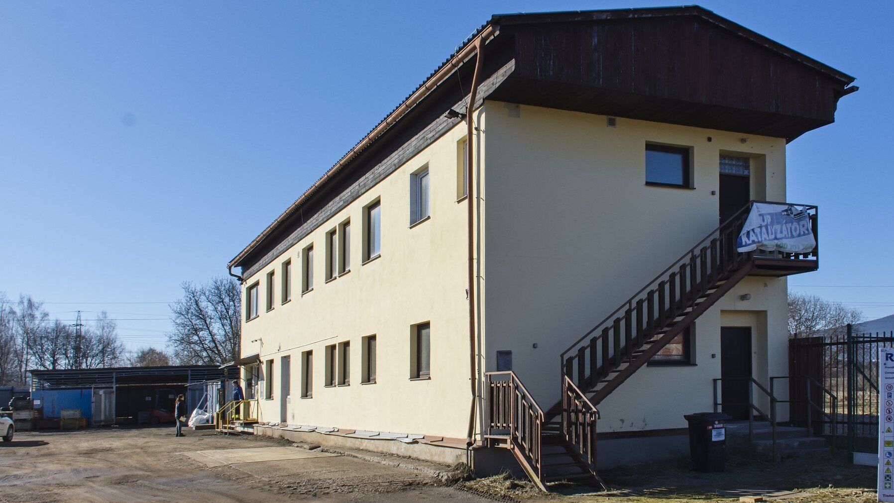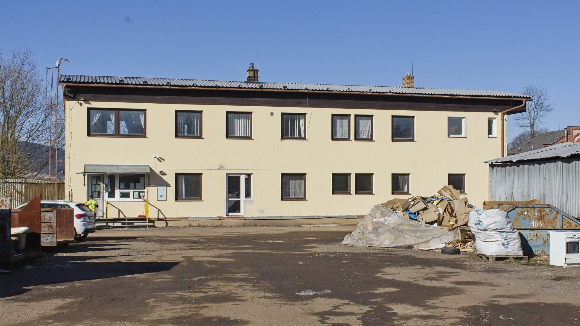 Hlavní budova je nepodsklepená, zděná, dvoupodlažní, se sedlovou střechou a je v dobrém technickém stavu. Zastavěná plocha dle KN 174 m2. Zahrnuje 7 x kancelář, kuchyňky, šatny, umývárnu, WC, kotelnu. Budova je vytápěna ústředním topením s automatickým kotlem a TP (uhlí) splňujícím aktuální normy.