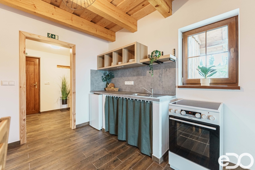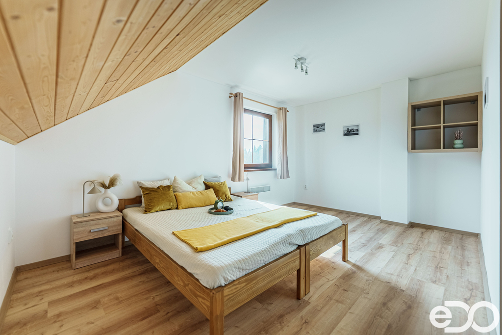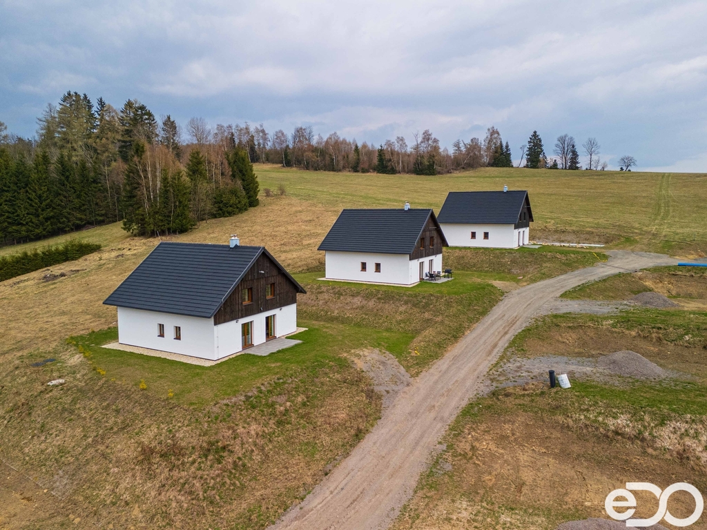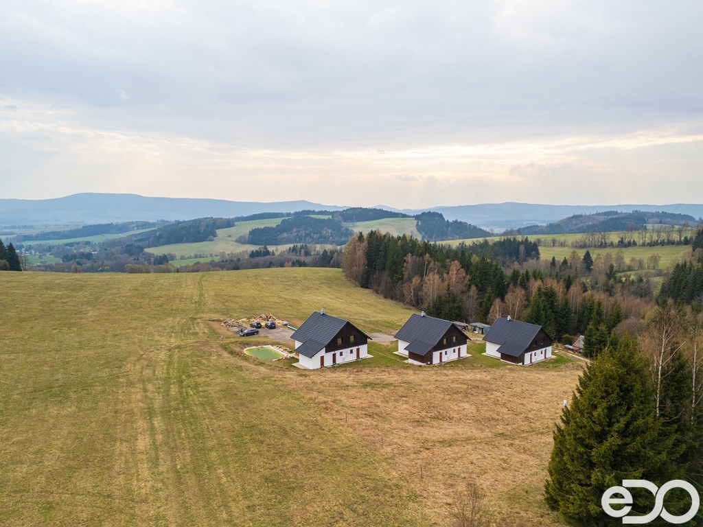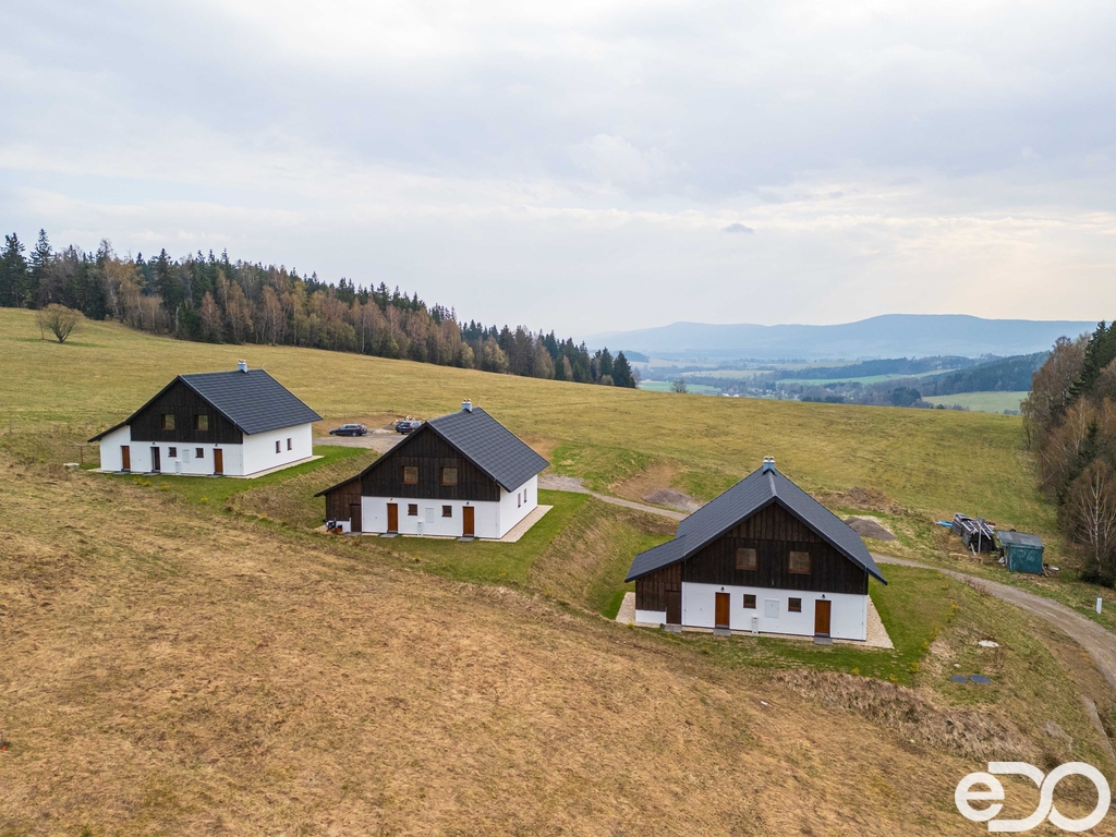 Ve výhradním zastoupení majitele nabízím k prodeji dům se dvěma apartmány o dispozici 3+kk, situovaný na krásném místě s výhledem do okolních hor. Apartmán o celkové ploše cca 100 m², představuje ideální místo pro odpočinek v srdci přírody, pouhé 2 km od oblíbeného horského střediska Dolní Morava. Apartmány zaujmou svou útulnou atmosférou, která spojuje moderní prvky s přírodními materiály. V interiéru najdete dřevěné schody, pokoje obložené dřevem a v přízemí krbová kamna, která dotvářejí příjemný horský charakter nemovitosti. Vytápění je doplněno elektrickými přímotopy. Součástí každého apartmánu je moderní sprchovým kout společně s toaletou v dekoru imitace dřeva, stylově doplněný černými prvky. Každý dům má vlastní dřevěnou kůlnu na nářadí. Pro všechny objekty je zajištěna společná voda a ČOV.