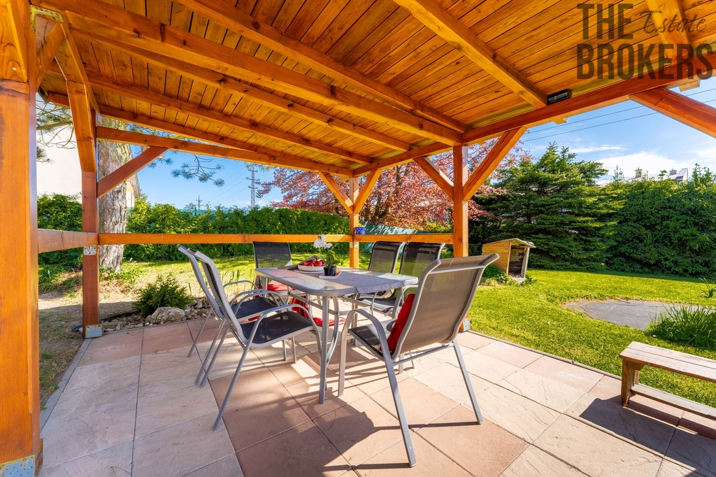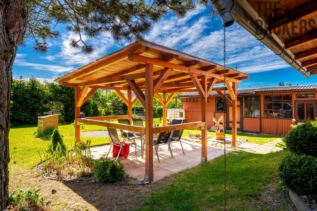 K domu náleží parcela o celkové výměře 819 m², která slouží jako zahrada a nabízí dostatek prostoru pro relaxaci, dětské hry i rodinné grilování. Součástí je pergola a zahradní domek pro praktické využití.