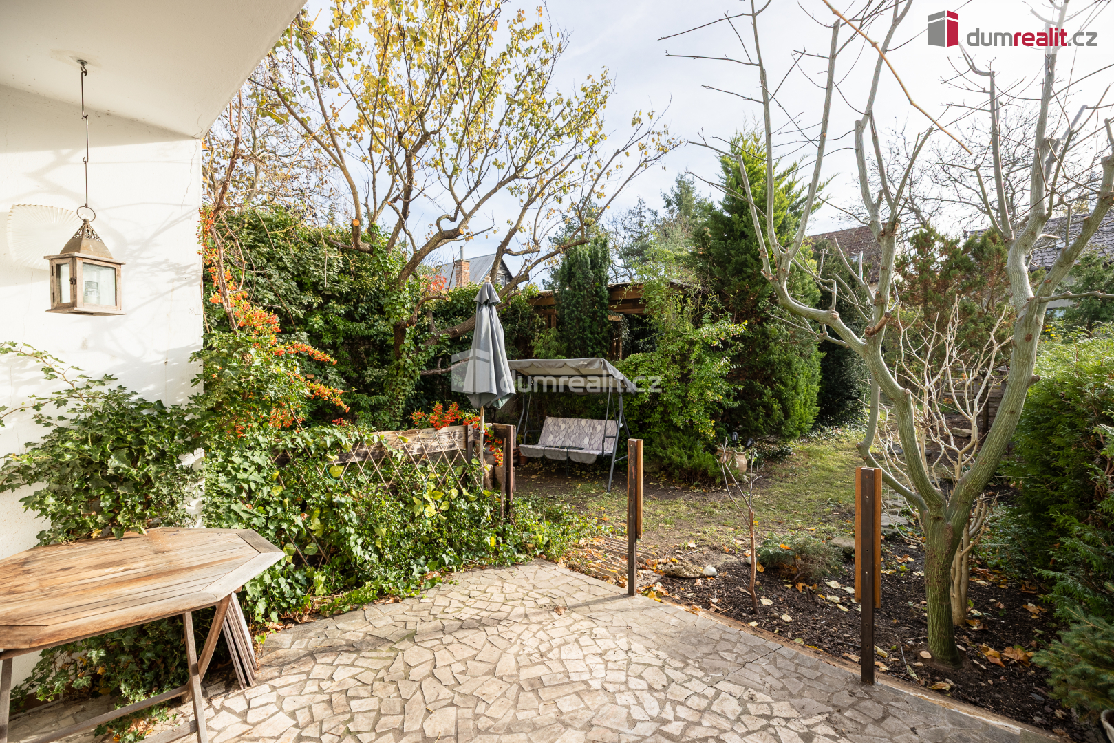 Zahrada je osázená převážně okrasnými dřevinami, ale také ovocnými stromy. V zahradě je vybudované posezení. Pergola je díky vzrostlé vegetaci v zahradě nenápadná a poskytuje stín a chládek.
