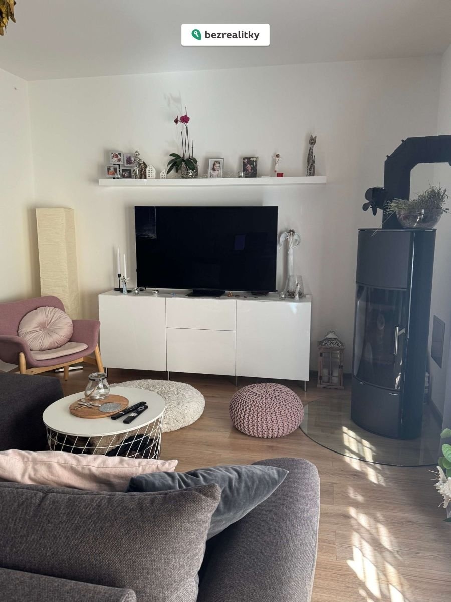 Nabízíme Vám prodej moderního, úsporného, krajového řadového domu 4+kk, který se nachází v nové zástavbě v Králově Dvoře. Jedná se o stavbu montovanou z ocelového systému Festcraft, postavenou v roce 2019. V předsíni domu se nachází velká vestavěná skříň, toaleta a technická místnost pro pračku a sušičku. Obývací pokoj domu je orientovaný na jih se vstupem na terasu a zahradu. Na druhou stranu je orientována kuchyň s kuchyňskou linkou. Linka je plně vybavena vestavěnými spotřebiči, indukční deskou, troubou, mikrovlnou troubou, myčkou a ledničkou. Vedle schodiště do patra je další technická místnost - spíž. V patře domu se nachází ložnice s velkou vestavěnou skříní, dva dětské pokoje a koupelna s toaletou. Objekt je vytápěn úsporným podlahovým vytápěním Gaboterm, druhý zdroj vytápění zajišťují krbová kamna, umístěná v obývacím pokoji. Podlahy domu jsou plovoucí. Na terasovitém pozemku je příprava na dřevěný zahradní domek, dva plechové zahradní domky a terasa s pergolou. Před domem se nachází dvě parkovací stání, která jsou na vlastním pozemku. Dům se nachází v klidné slepé ulici – bez hluku z dálnice s výhledem na dominantu kraje horu Děd. V okolí je veškerá občanská vybavenost. OC Králův Dvůr je cca 10 minut chůze. Výborná dostupnost na dálnici D5. Dojezd na Zličín 20 minut. Nedaleko domu se nachází autobusová zastávka MHD a oplocené dětské hřiště.