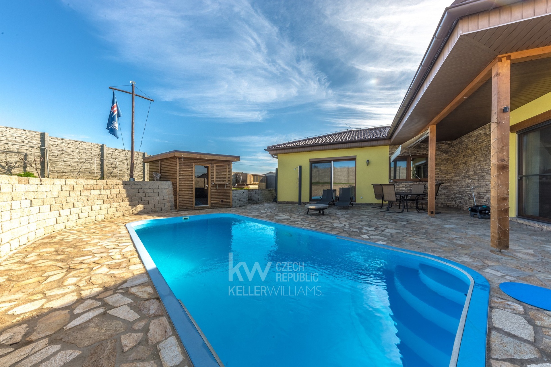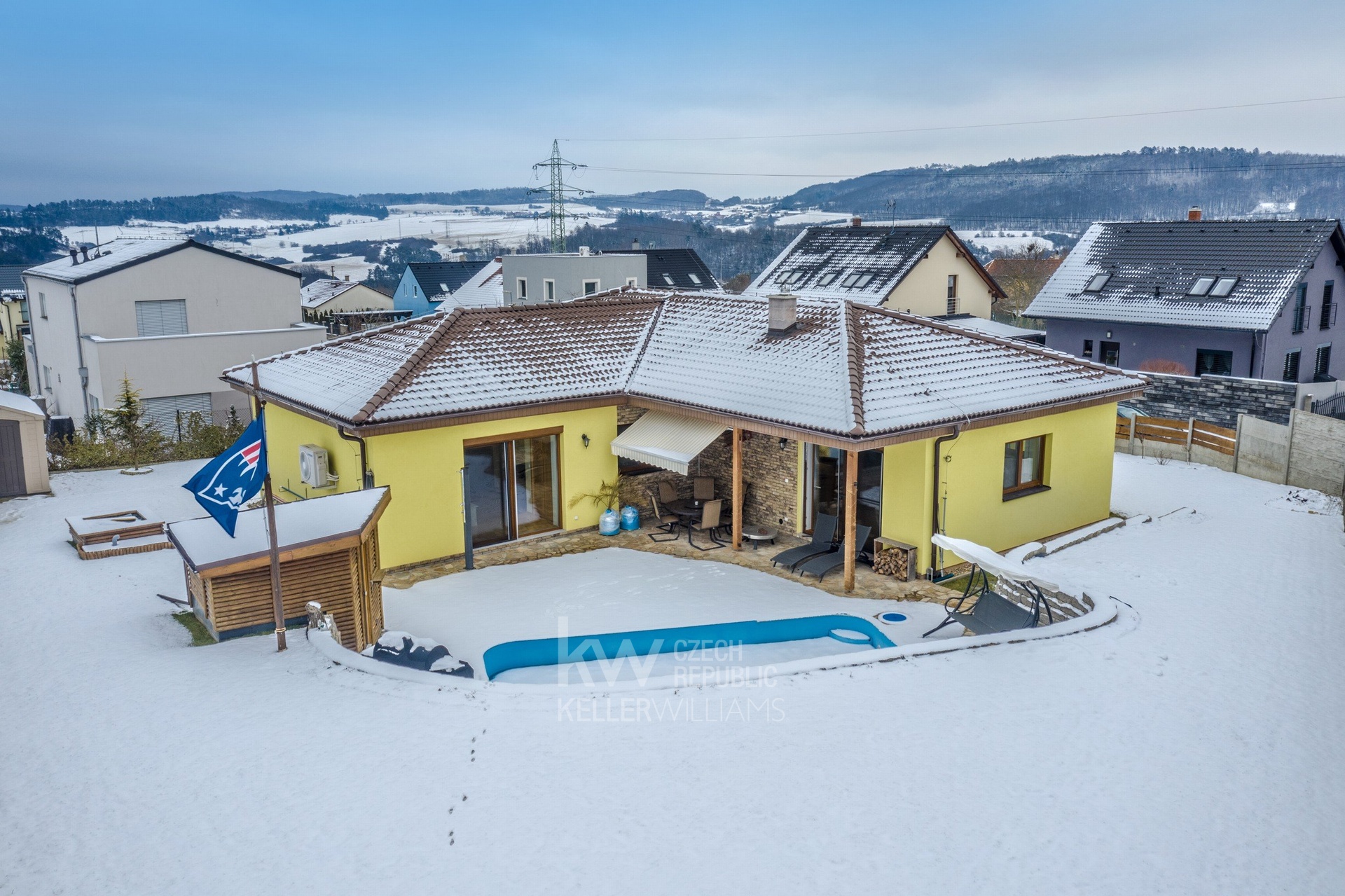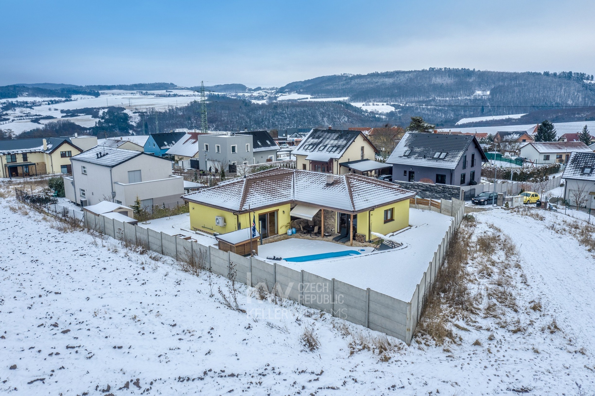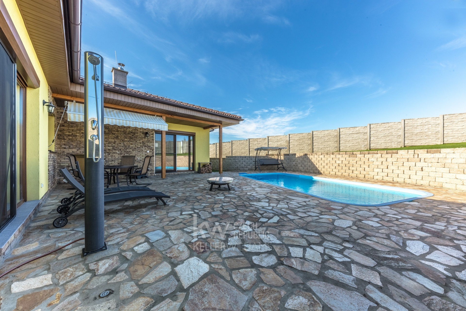 Novostavba bezbariérového RD 4+kk v Křižatkách. Oáza klidu a soukromí, bazén, sauna.