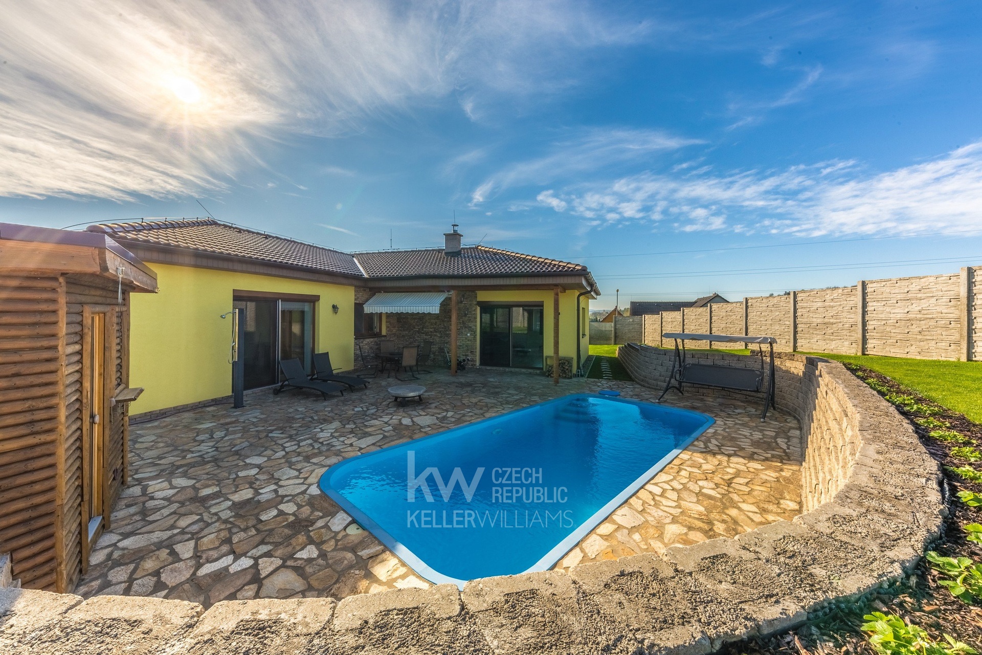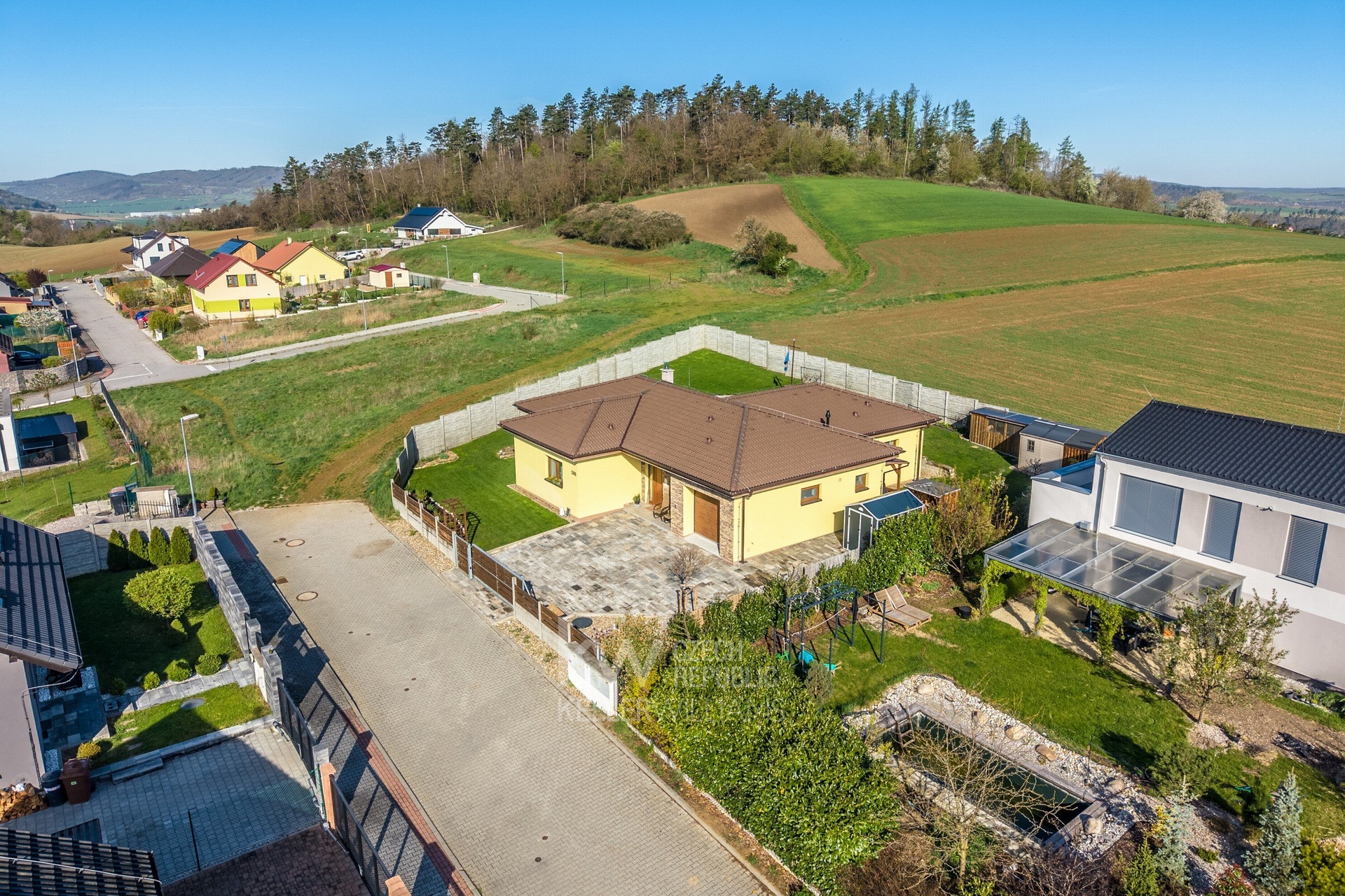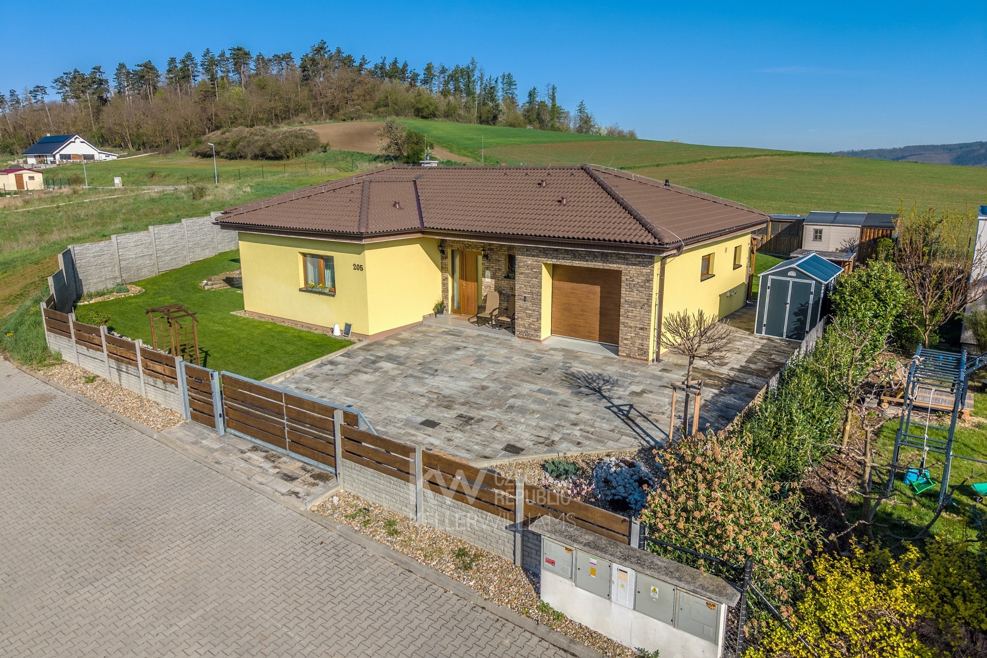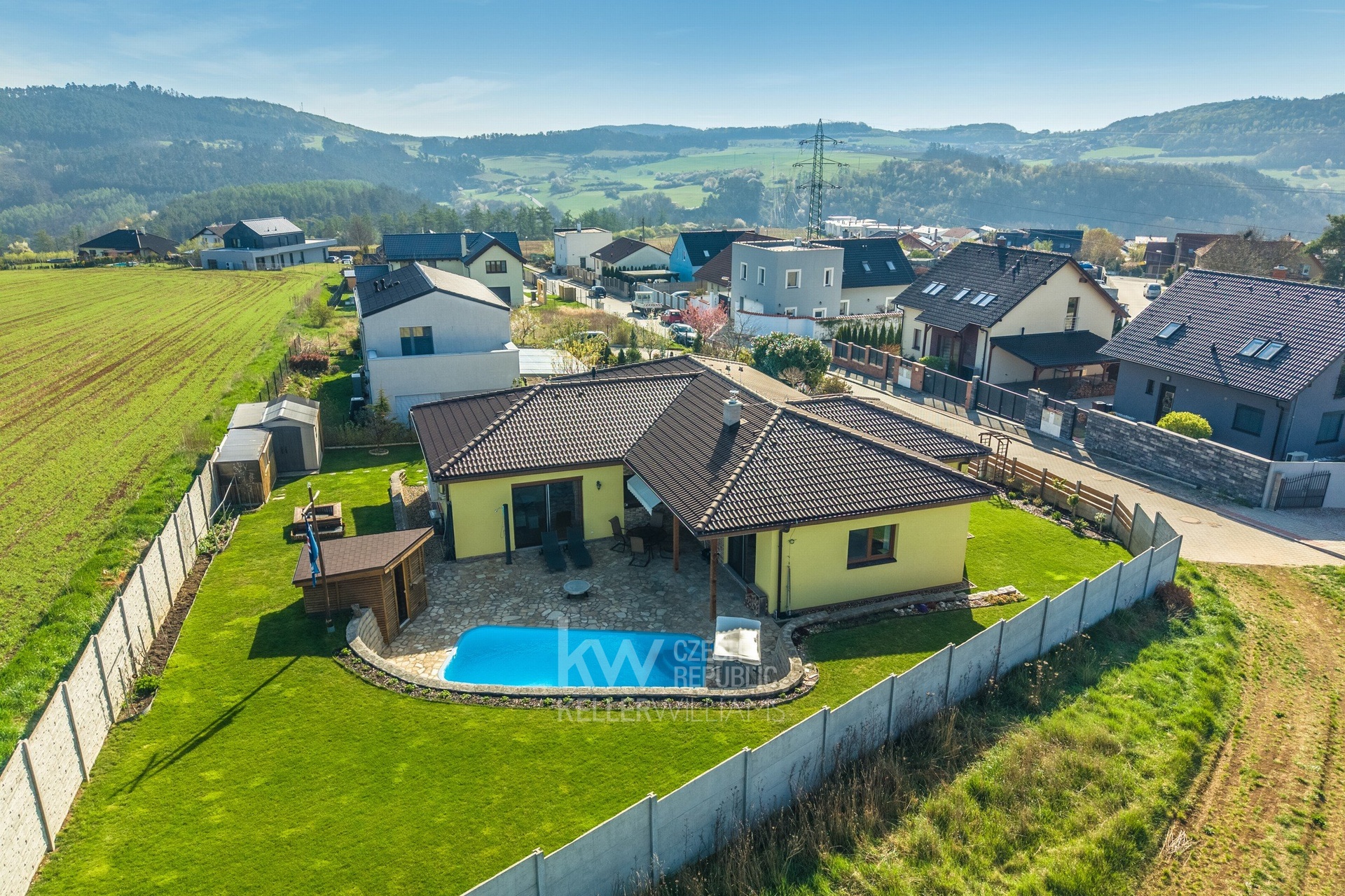 Novostavba bezbariérového RD 4+kk v Křižatkách. Oáza klidu a soukromí, bazén, sauna.