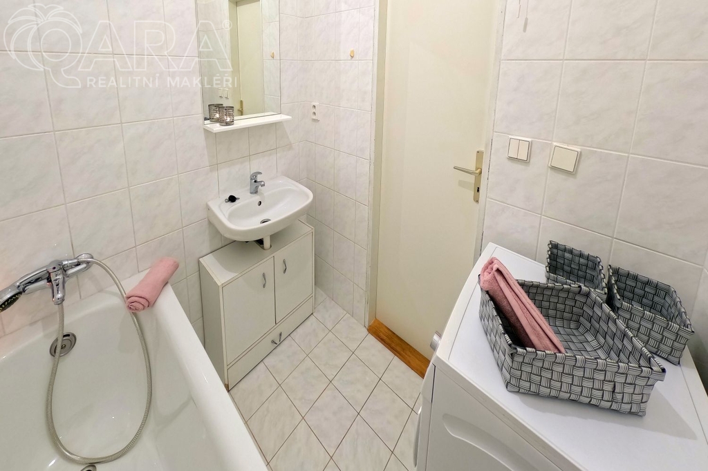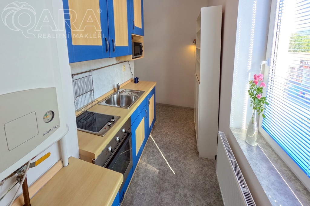 Zařízený byt o velikosti 37 m2 se nachází ve druhém podlaží bytového domu. Obývací pokoj a kuchyně jsou orientovány na jih. Kuchyňská linka je vybavena vestavěnou lednicí, indukční deskou na vaření a mikrovlnnou troubou. V pokoji je velká skříň, dvoulůžko, sedací souprava, jídelní a pracovní stůl. K dispozici je také vstupní chodba, koupelna s vanou a pračkou, a samostatné WC.