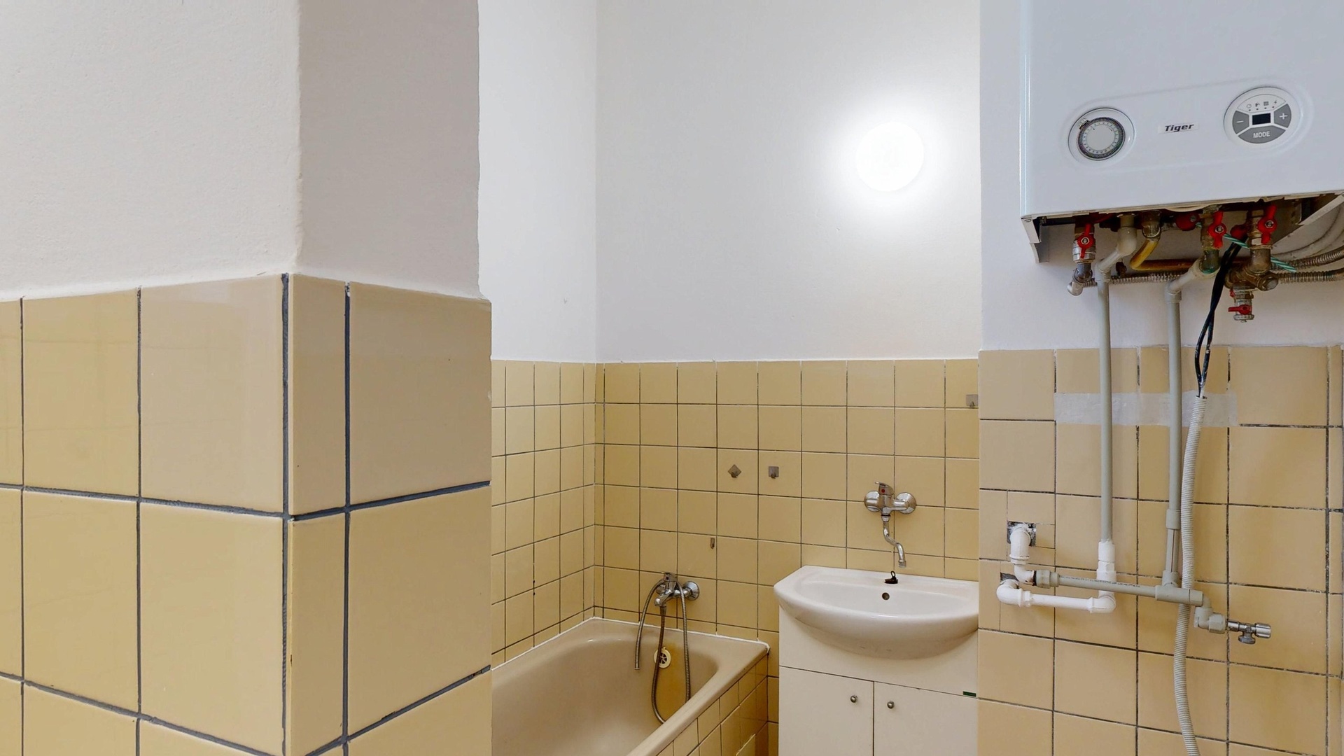 Byt se nachází v 1. patře cihlového dvoupodlažního domu a dispozice 3+kk poskytuje dostatek prostoru pro pohodlné bydlení jednotlivce, páru či menší rodiny. Díky orientaci oken na jih a sever je interiér světlý a vzdušný.