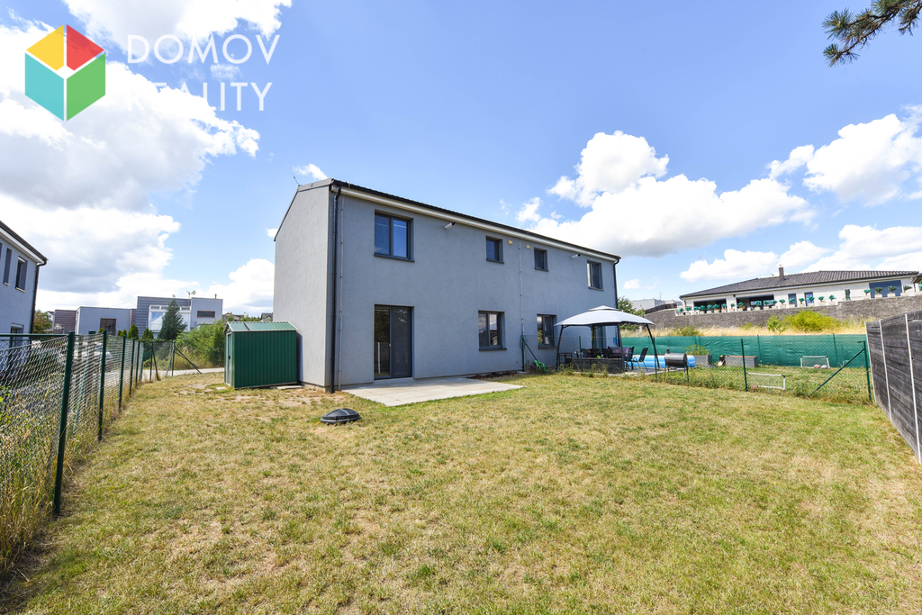 Dům o užitné ploše 78,8 m² je součástí tiché rezidenční zástavby a nabízí vlastní zahradu o velikosti 209 m². Na zahradě najdete terasu pro venkovní posezení, zahradní domek a retenční nádrž na dešťovou vodu. Zahrada je směřována do zeleně, bez další zástavby. Samozřejmostí jsou dvě vyhrazená parkovací stání přímo před domem.