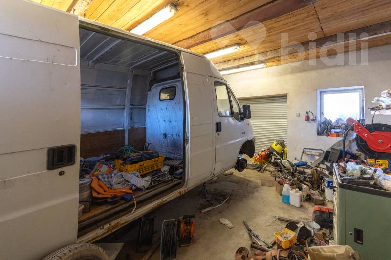 -- velká garáž s dílnou a přístřešky pro více vozidel