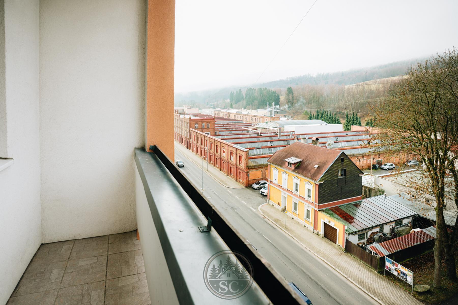 Další dva pokoje, z nichž jeden disponuje lodžií, mají výhled do ulice a na protější louku.
